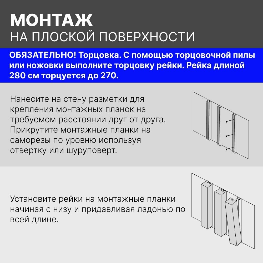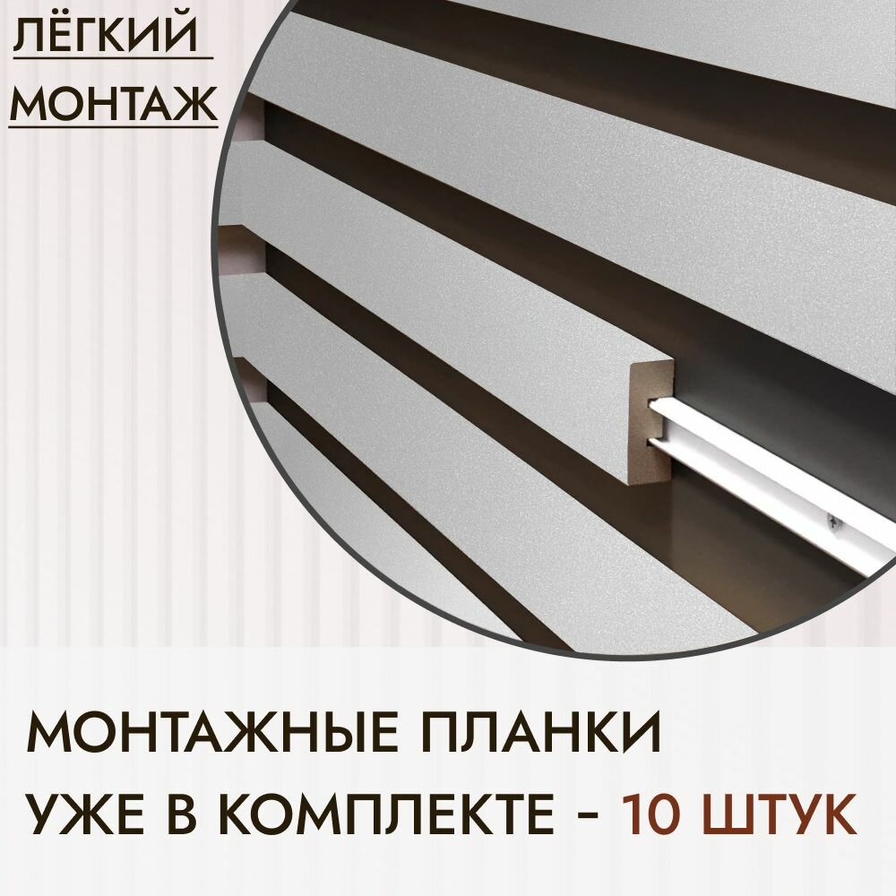 | Подробная комплектация | Интерьерная рейка - 10 шт. Монтажная планка - 10 шт. |