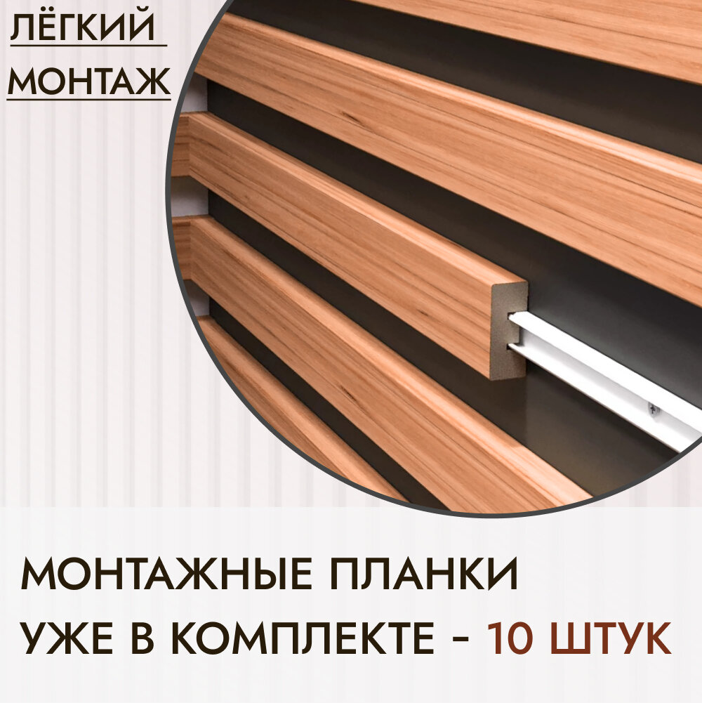 | Подробная комплектация | Интерьерная рейка - 10 шт. Монтажная планка - 10 шт. |