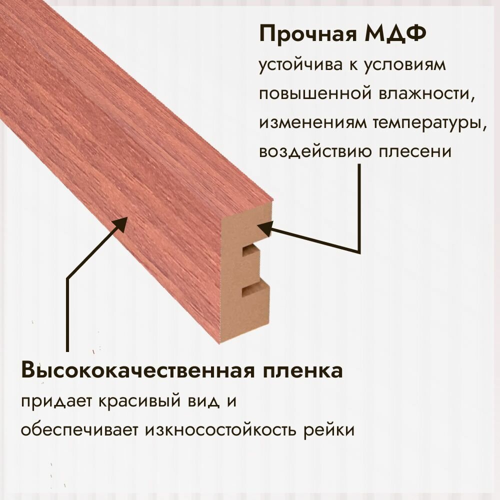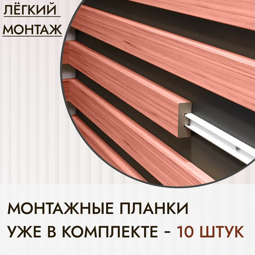 Рейка интерьерная МДФ для стен и потолков, с монтажной планкой, 40*16*2800мм, 10 штук, цвет Бук