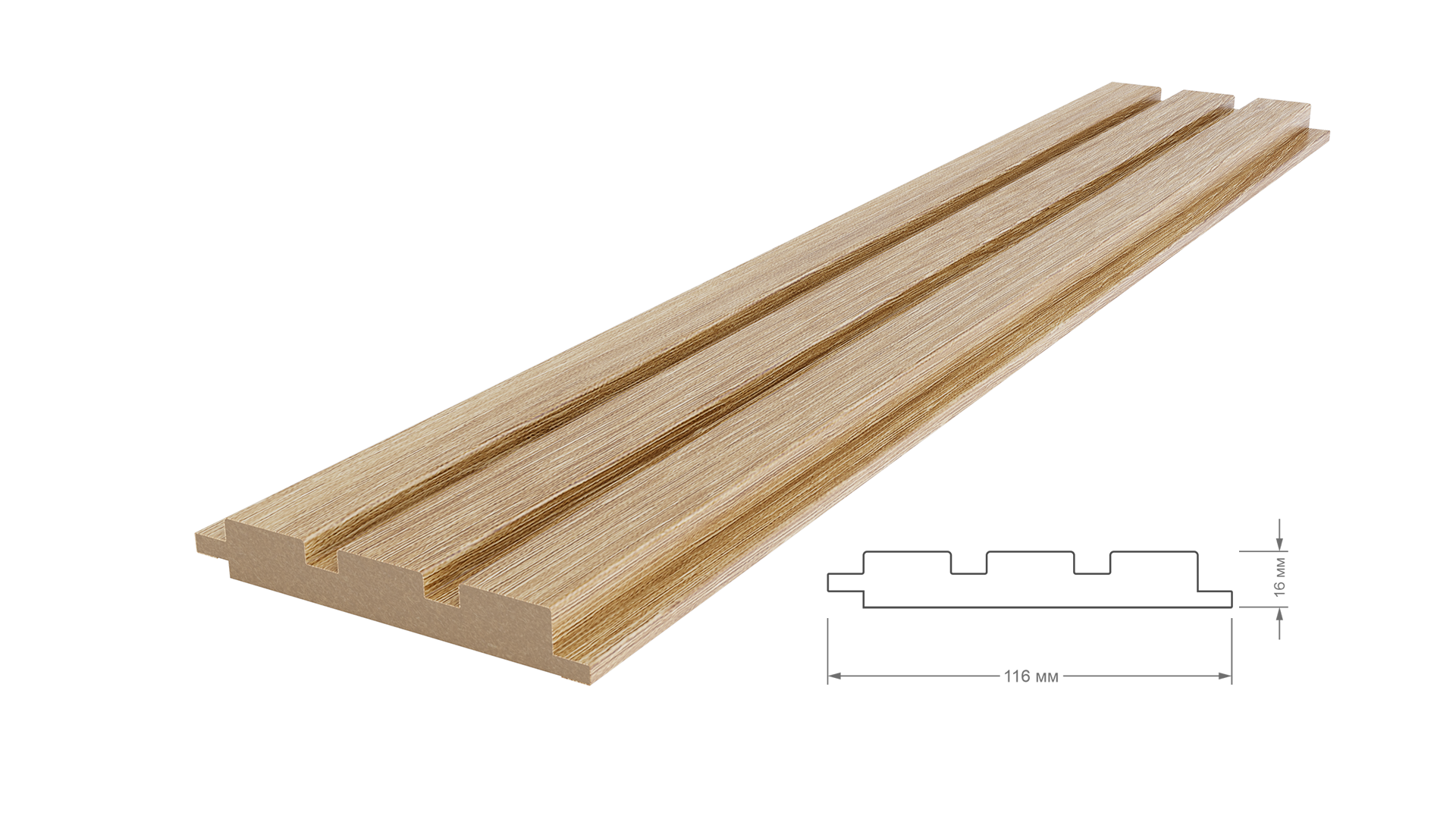 Реечная Модульная стеновая панель РИТМ САВАШ ДУБ НАТУРАЛЬНЫЙ 2800*116*16 мм - 12 шт. - 12 шт