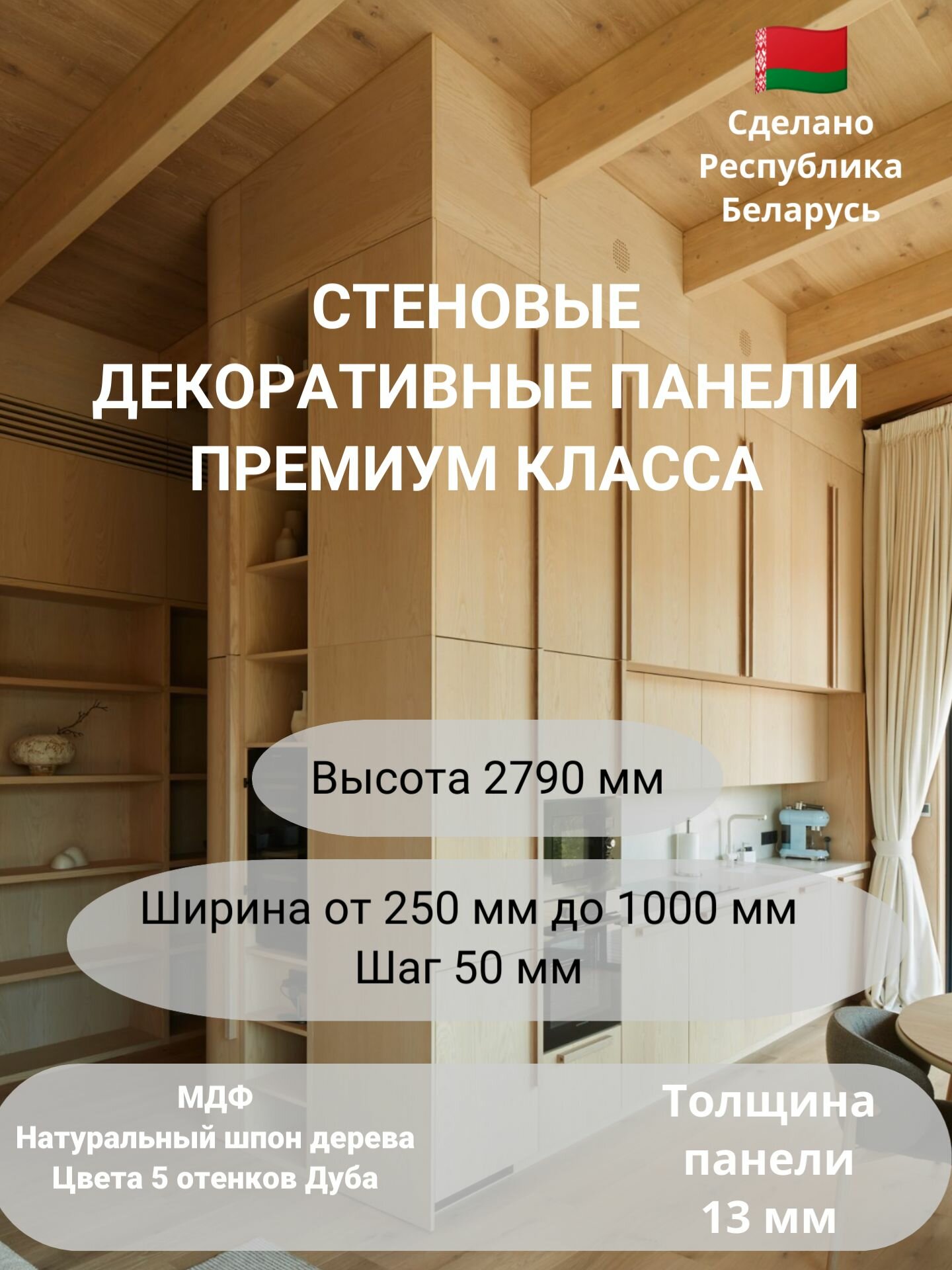 Стеновые панели шпон дерева ширина 800 мм. Цвет Дуб Natural D1