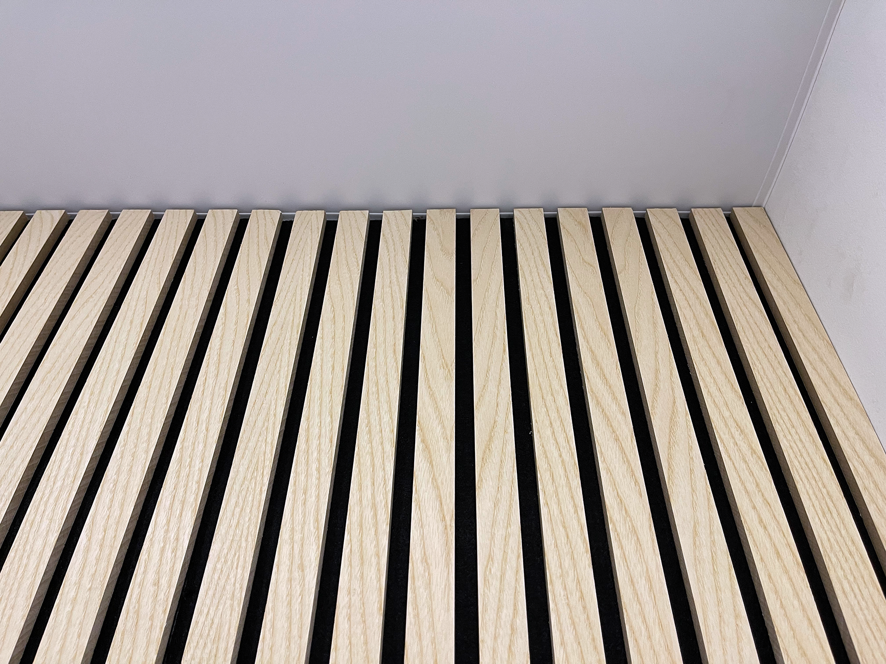 Акустическая реечная панель AKUPANEL - Декоративные рейки (Ясень Шпон) и белая акустическая панель Акупанель
