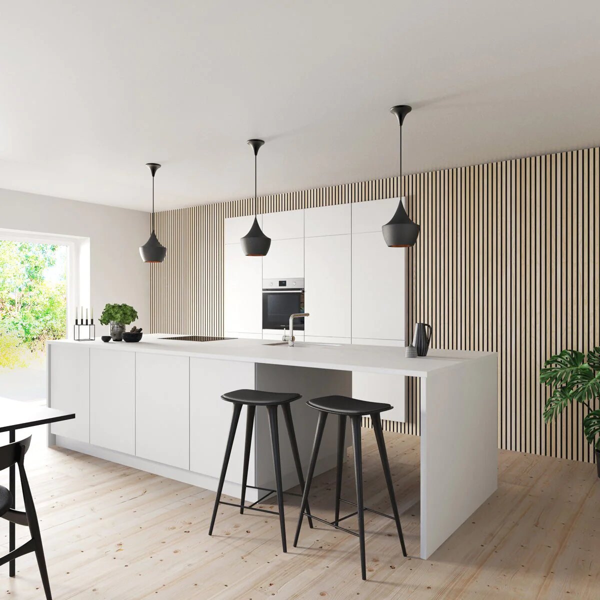 Акустическая реечная панель AKUPANEL - Декоративные рейки (Ясень Шпон) и белая акустическая панель Акупанель