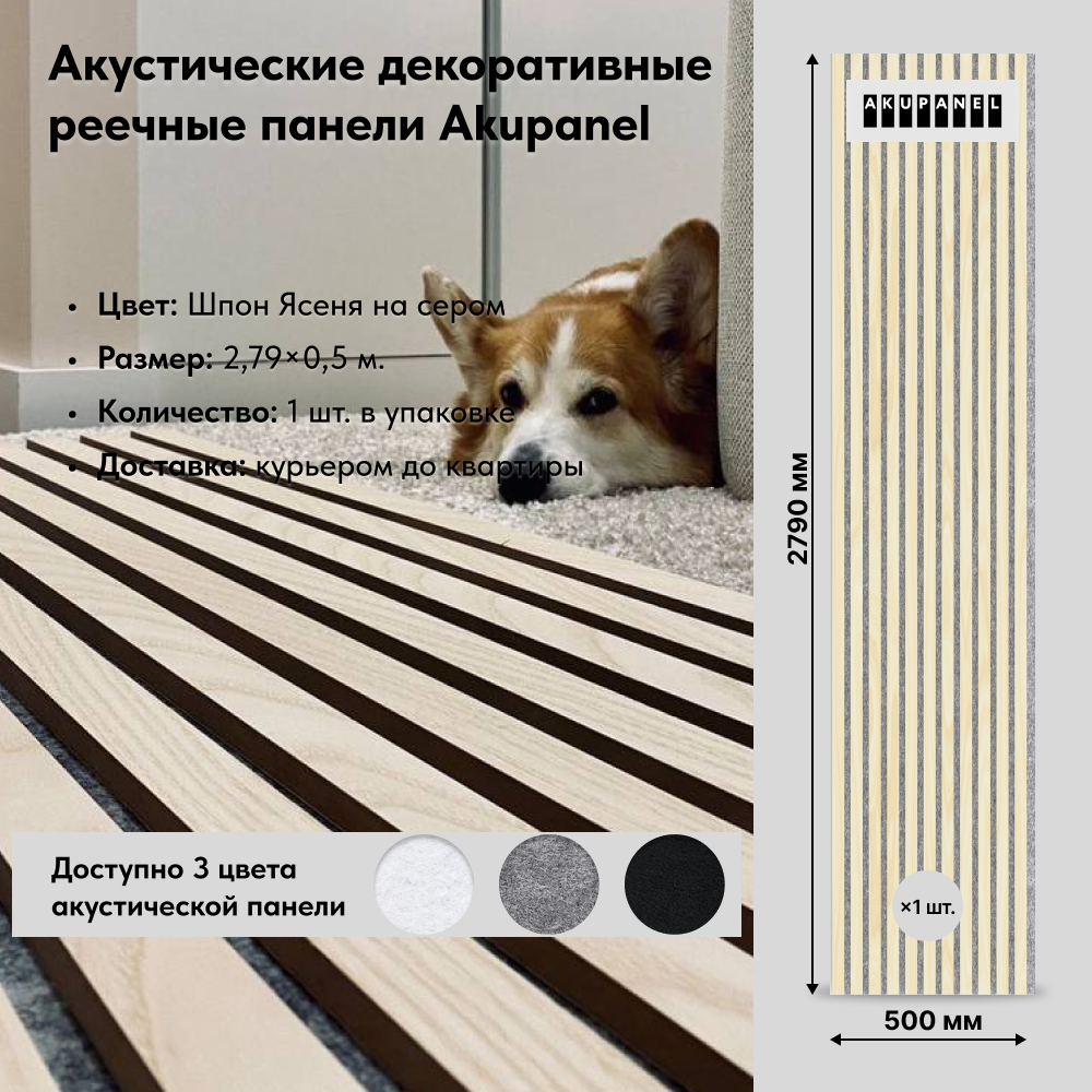 Купить Акупанель (Акустическая стеновая панель): декоративные рейки – Ясень шпон и Серая акустическая панель