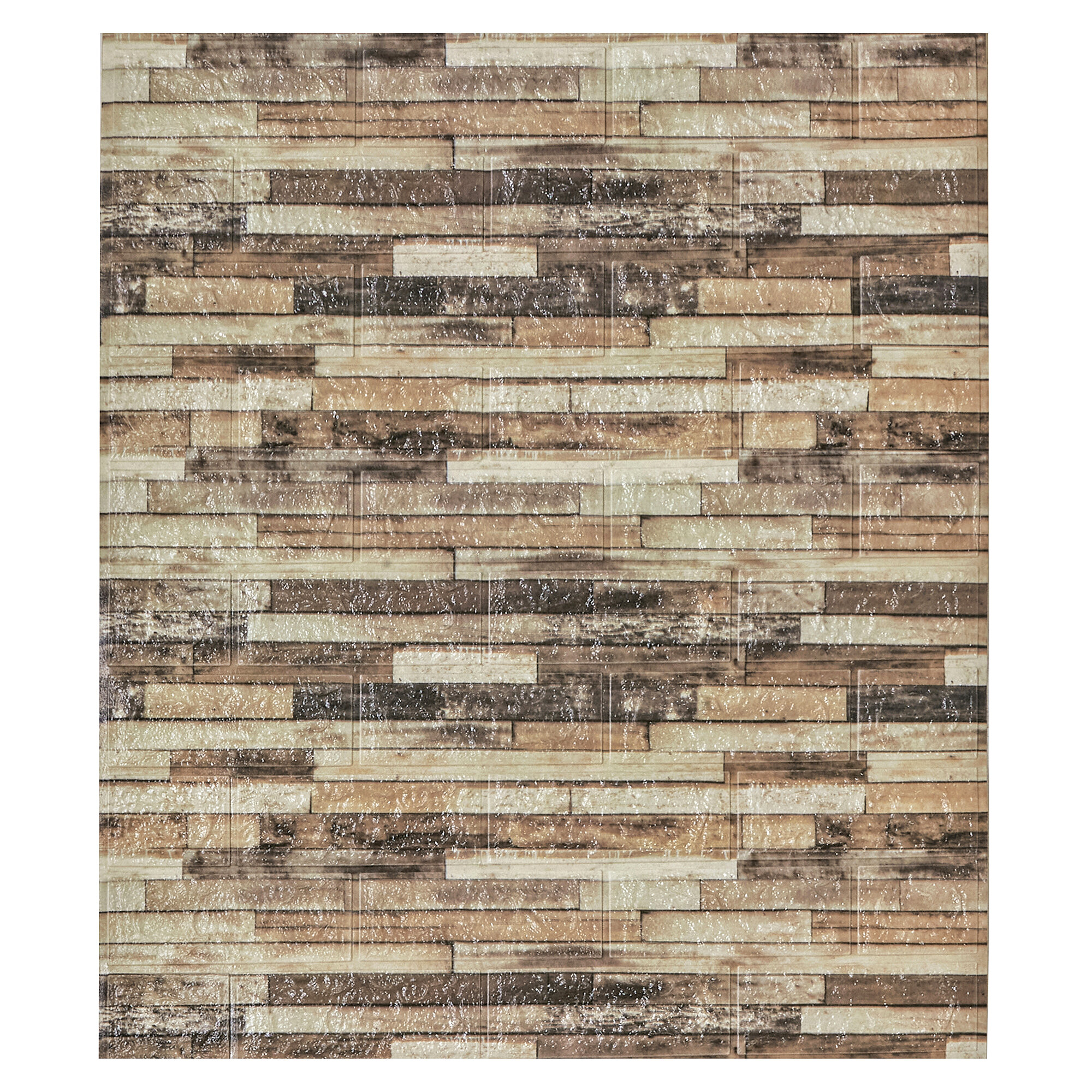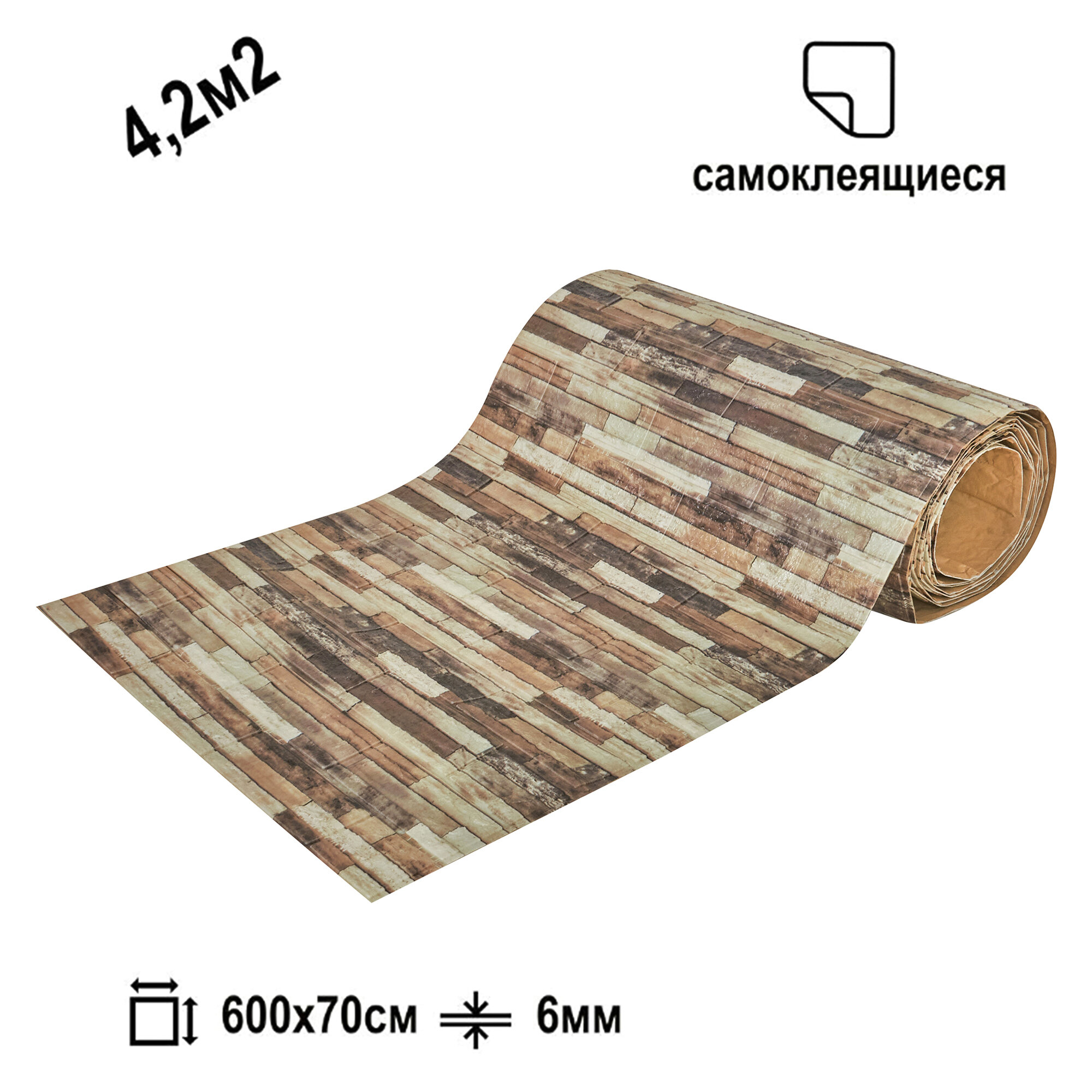 Самоклеящаяся ПВХ 3D-панель для стен в рулоне LAKO DECOR, коллекция Дерево, Коричневый микс, 70x600см, толщина 6мм