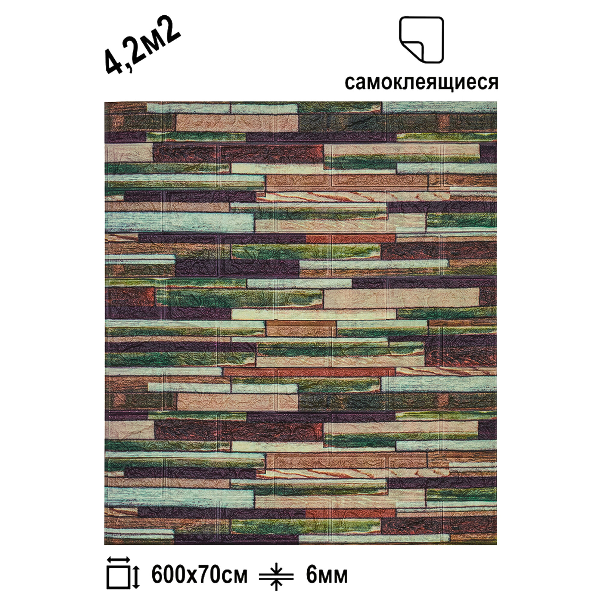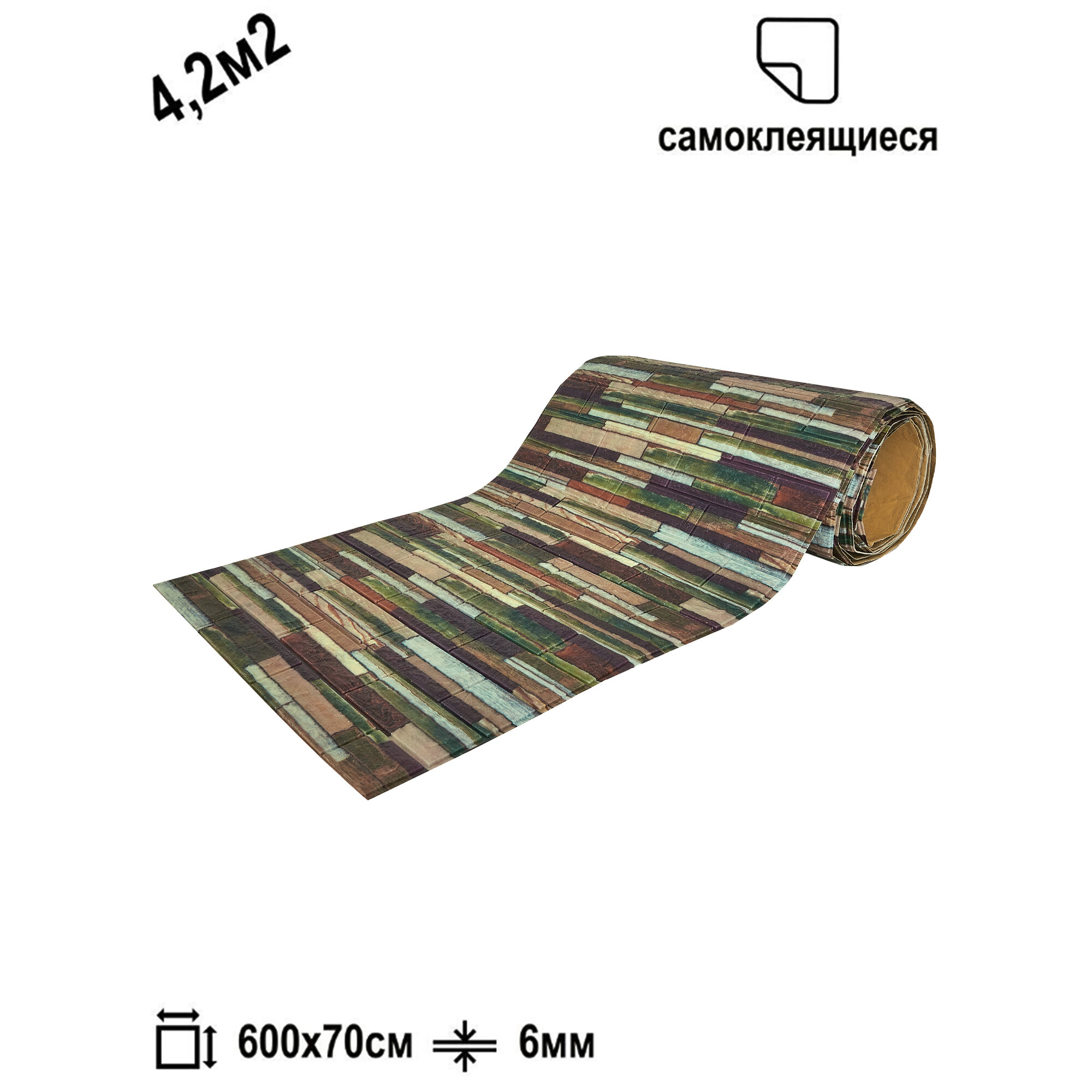 Самоклеящаяся ПВХ 3D-панель для стен в рулоне LAKO DECOR, коллекция Дерево, Коричневый микс, 70x600см, толщина 6мм