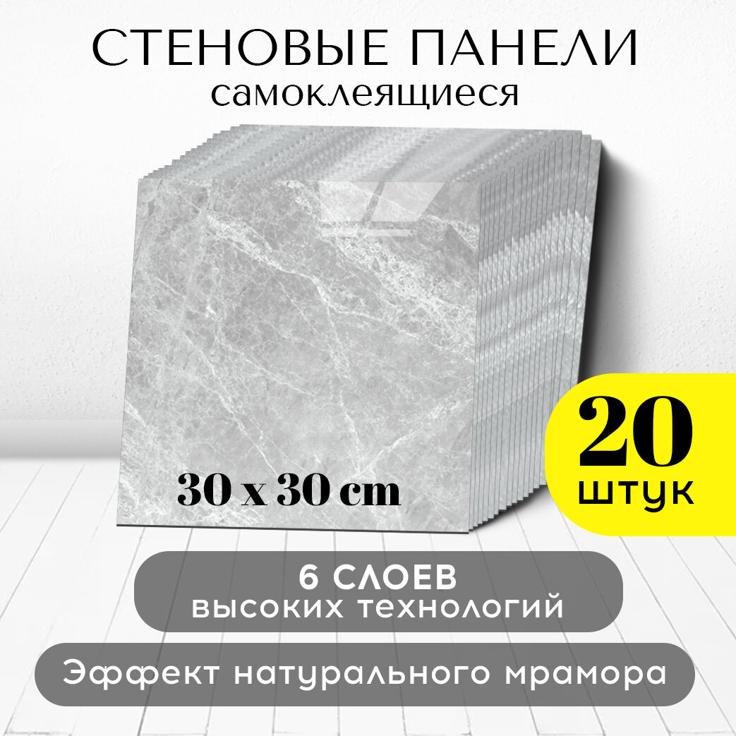 Панели для стен самоклеящиеся Conflate, Серый мрамор, 30*30 см, 20 шт. интересное:
