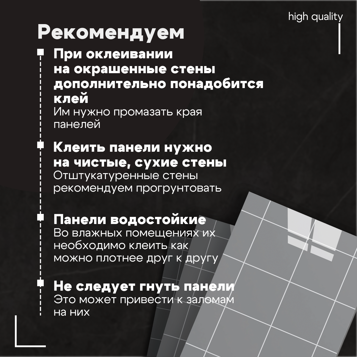 Самоклеящиеся панели стеновые "Катри", Черная квадратная плитка, 30x60см, 18шт, 3.24м2