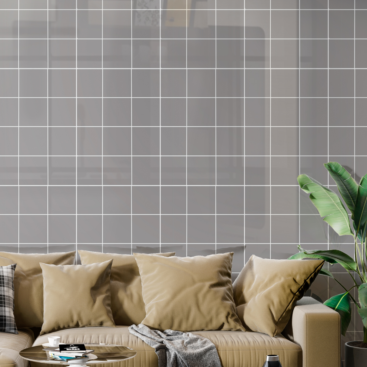 Купить Самоклеящиеся панели стеновые "Катри", Серая квадратная плитка, 30x60см, 18шт, 3.24м2