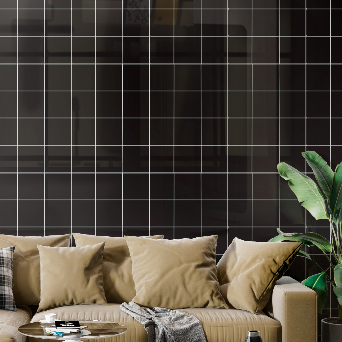 Купить Самоклеящиеся панели стеновые "Катри", Черная квадратная плитка, 30x60см, 18шт, 3.24м2