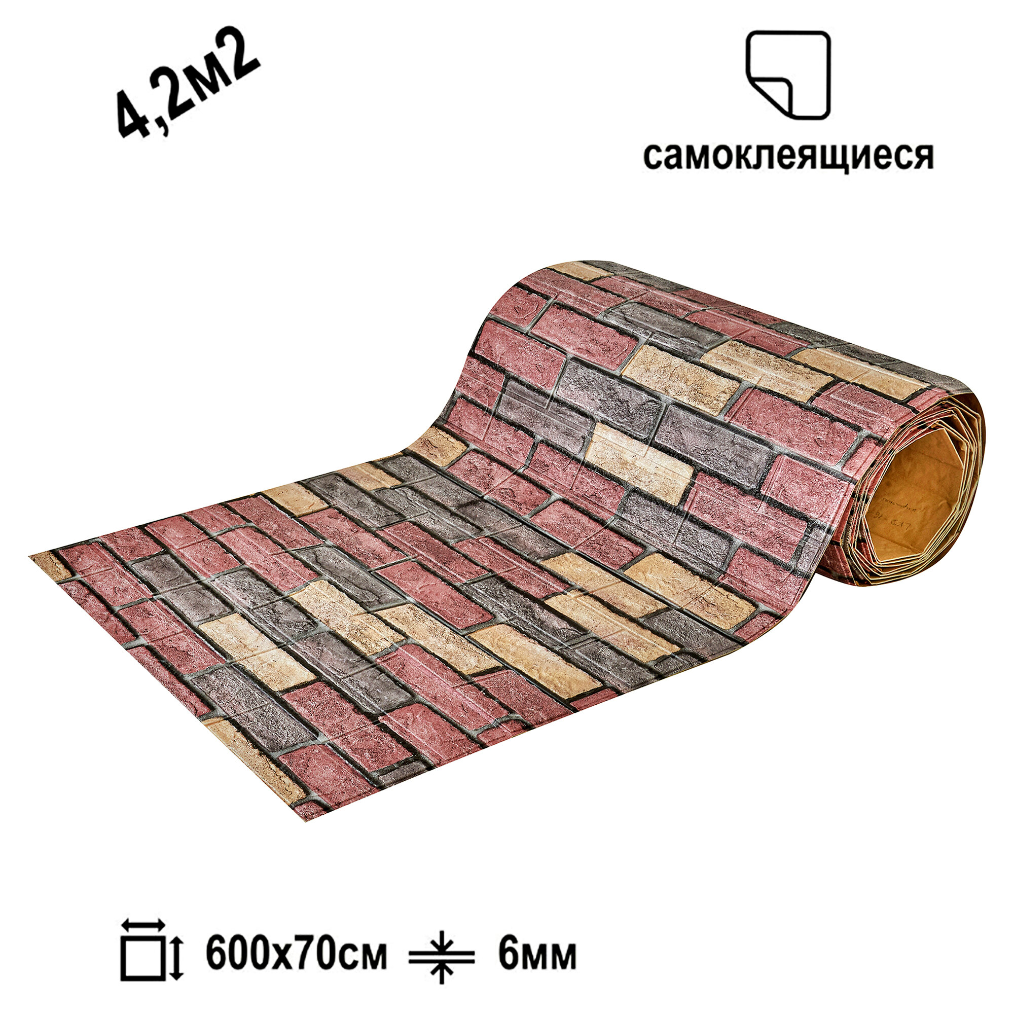 Самоклеящаяся ПВХ 3D-панель для стен в рулоне LAKO DECOR, Кирпичная кладка 18, 70x600см, толщина 6мм