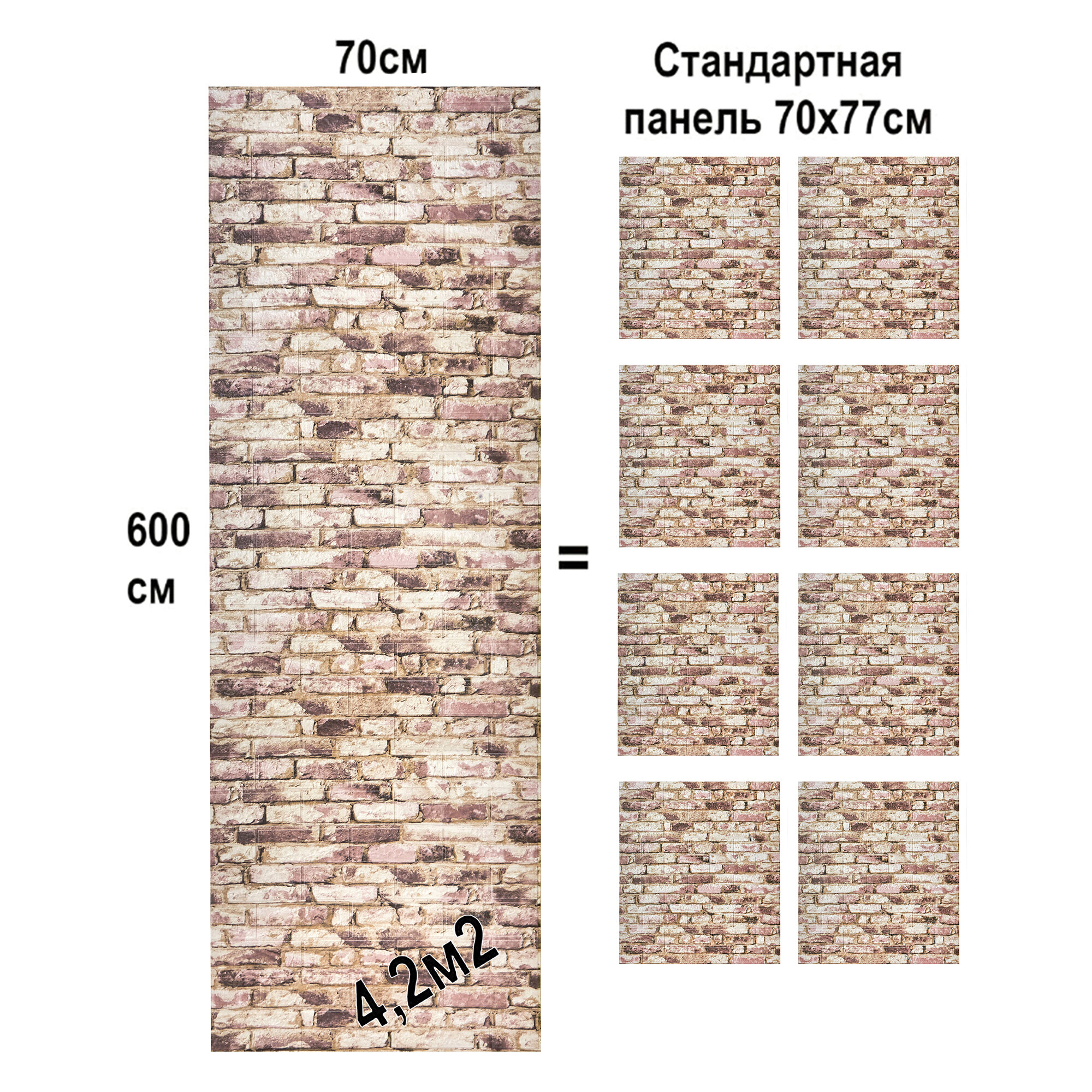 Самоклеящаяся ПВХ 3D-панель для стен в рулоне LAKO DECOR, Кирпичная кладка 12, 70x600см, толщина 6мм