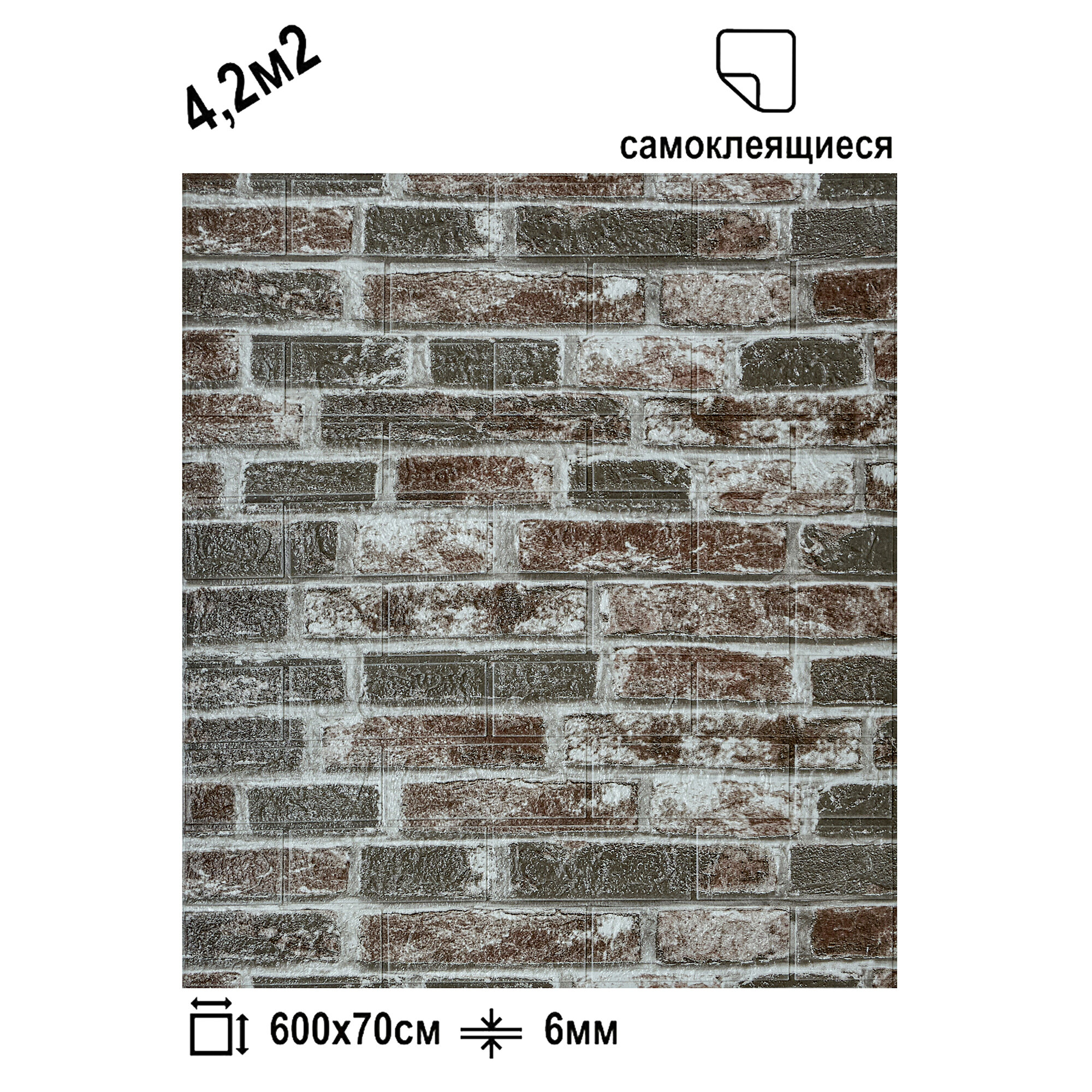 Самоклеящаяся ПВХ 3D-панель для стен в рулоне LAKO DECOR, Кирпичная кладка 17, 70x600см, толщина 6мм