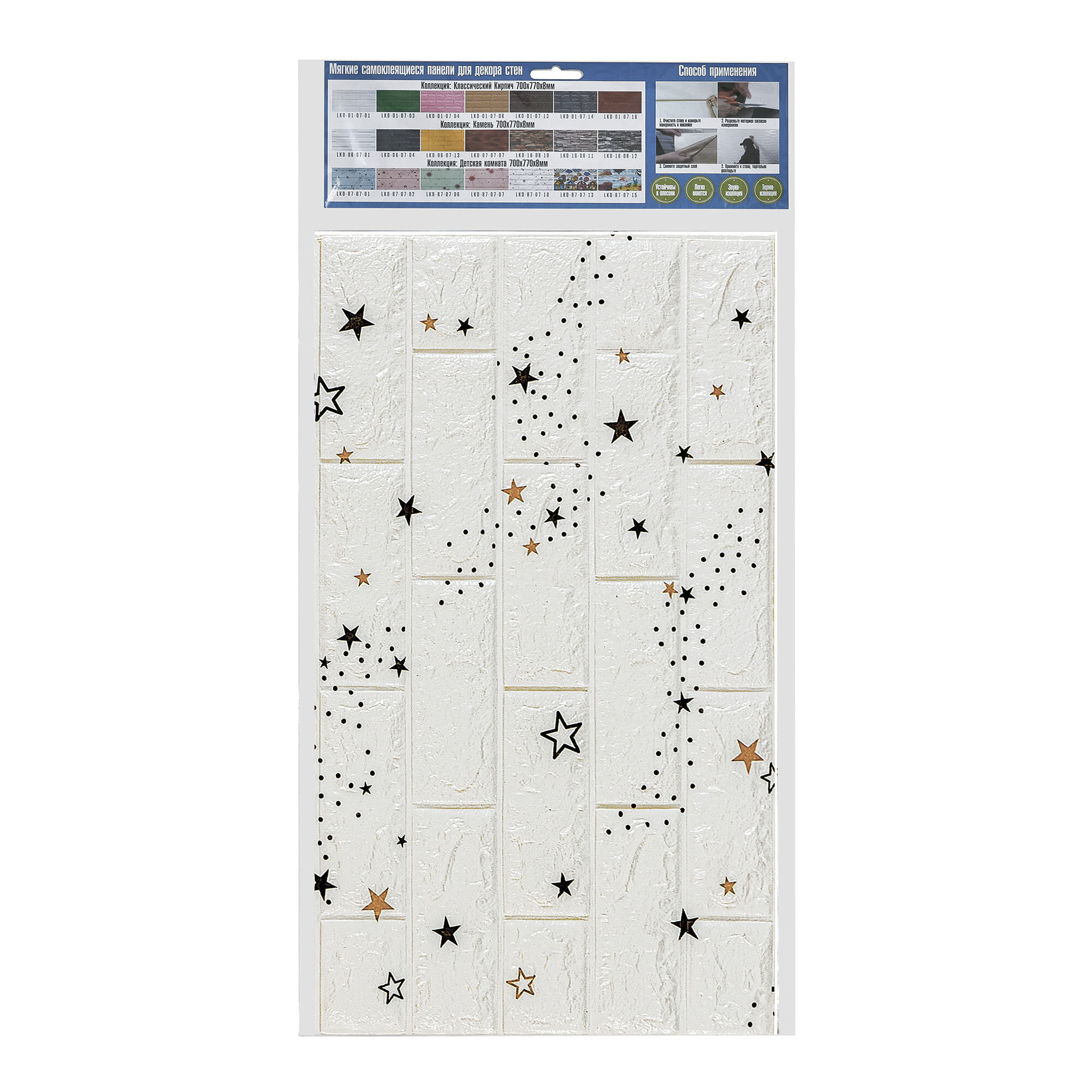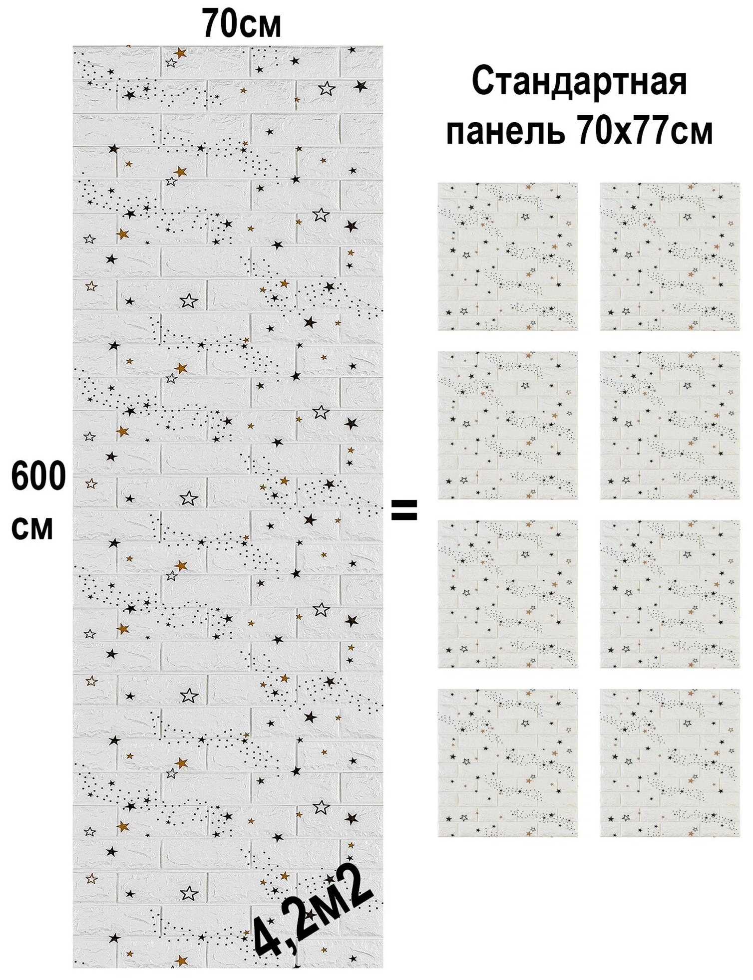 СохранитьСамоклеящаяся ПВХ 3D-панель для стен в рулоне LAKO DECOR, Детская комната, Звездное небо (белый кирпич), 70x600см, толщина 5мм интересное: