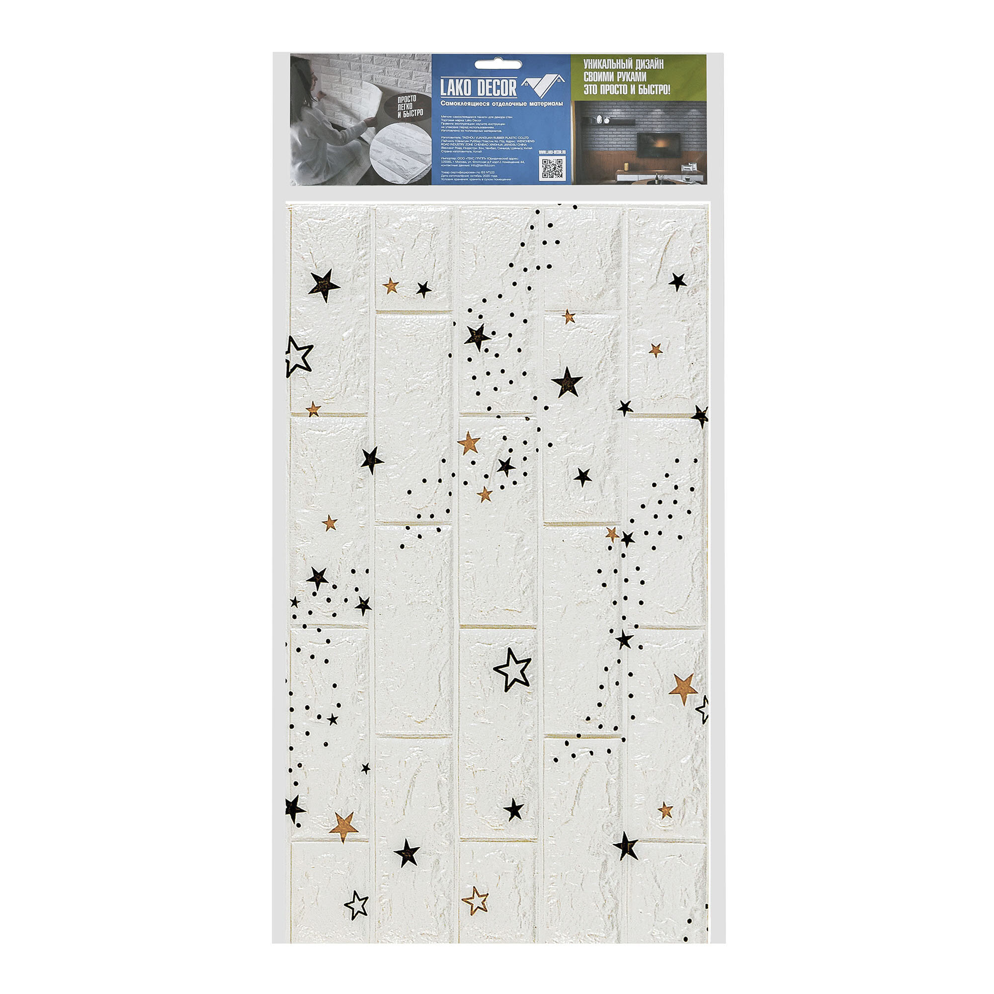 Купить Самоклеящаяся ПВХ 3D-панель для стен в рулоне LAKO DECOR, Детская комната, Звездное небо (белый кирпич), 70x600см, толщина 5мм