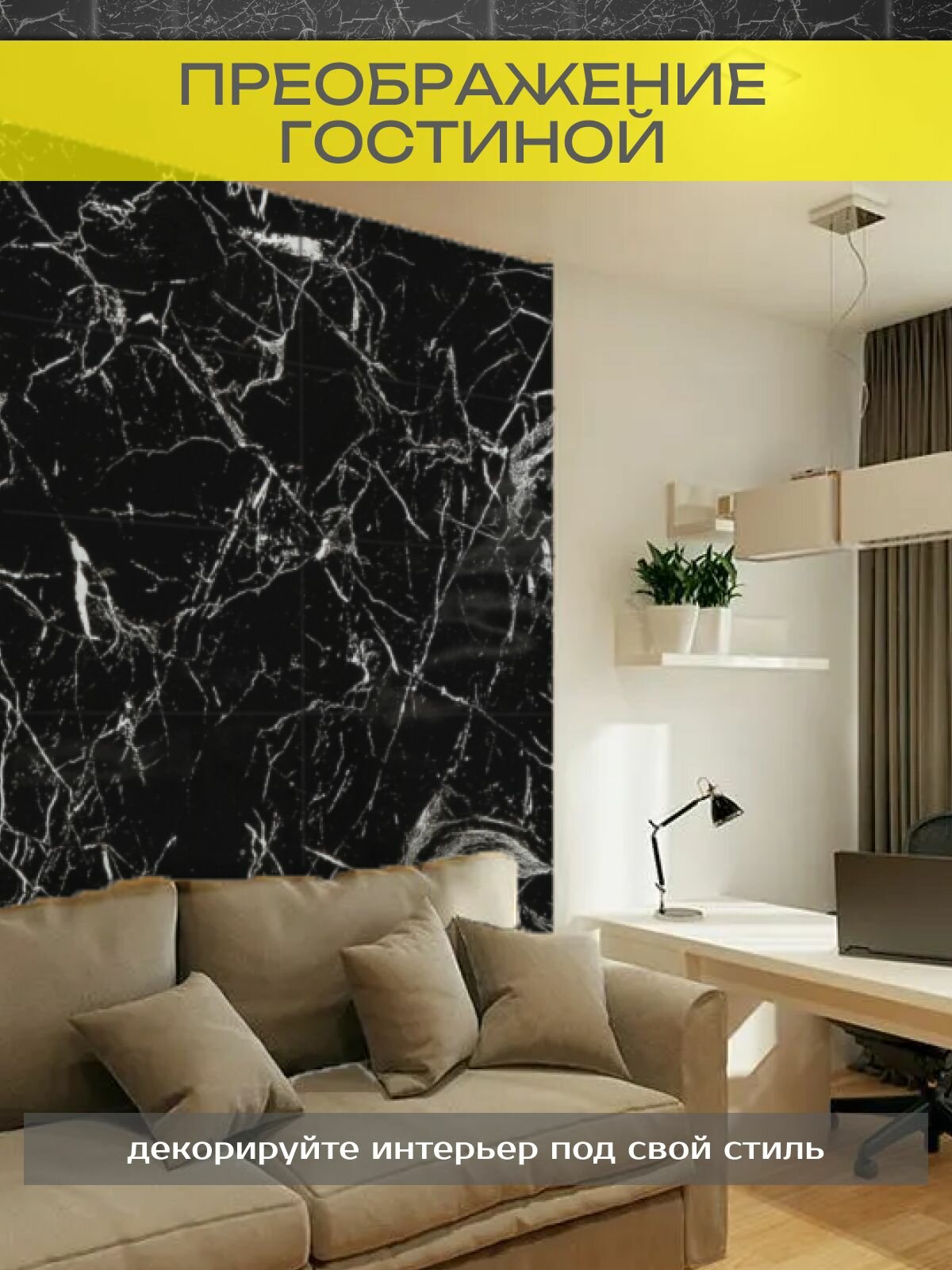 СохранитьПлитка самоклеющаяся для стен черная. 3d панели самоклеющиеся. Панели под мрамор 30х60 см ( комплект 20 шт), цвет: 036 интересное: