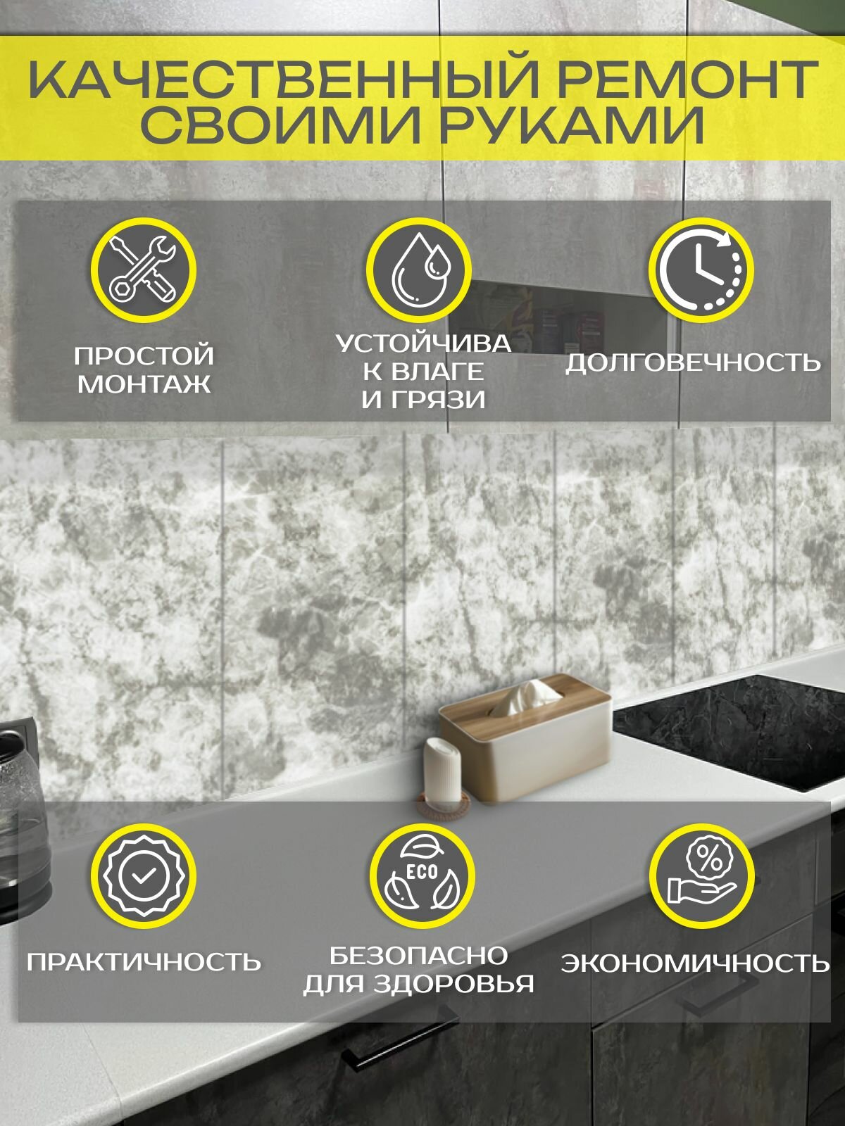 Панели для стен 60x30 см – 10 шт в наборе стеновые панели для кухни, ванной и гостиной. Цвет мраморные серые волны