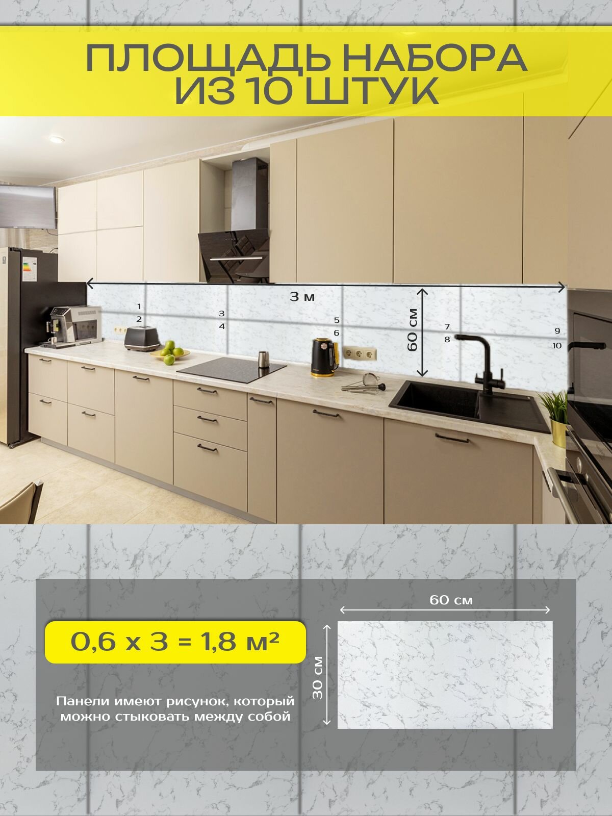Фартук на стену для кухни. Плитки декоративные для дома на кухню, в ванную - панели 30х60 см ( комплект 10 шт), цвет: 020