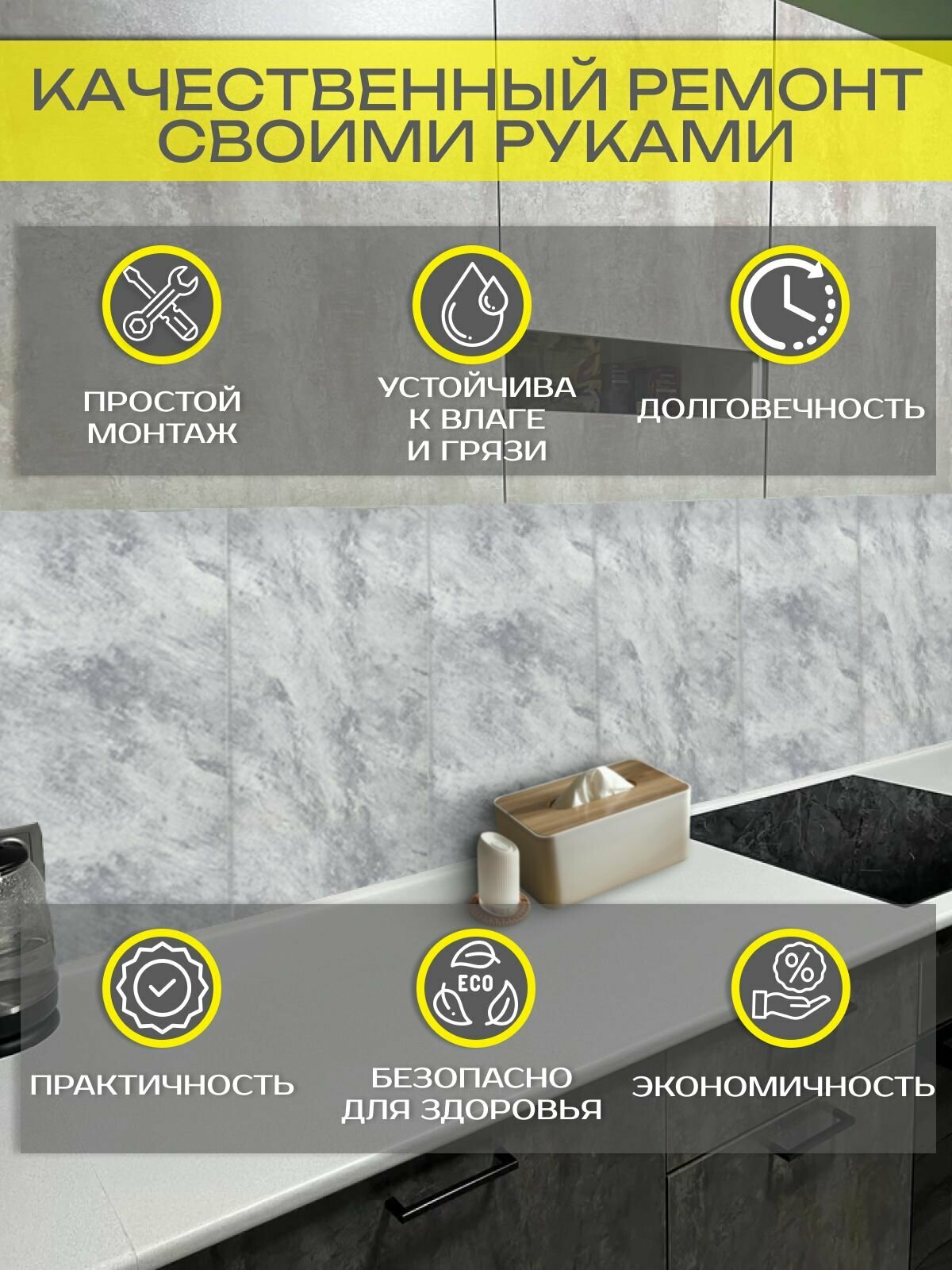 Панели для стен 60x30 см – 10 шт в наборе стеновые панели для кухни, ванной и гостиной. Цвет мраморные серые волны