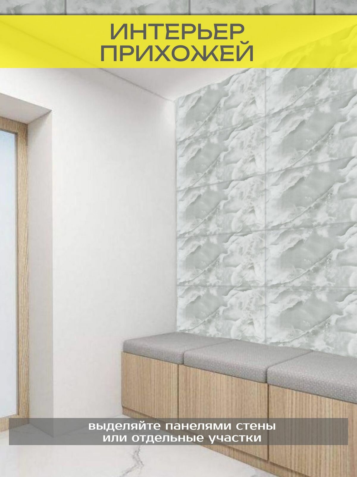 Панели для стен 60x30 см – 10 шт в наборе стеновые панели для кухни, ванной и гостиной. Цвет мраморные серые волны