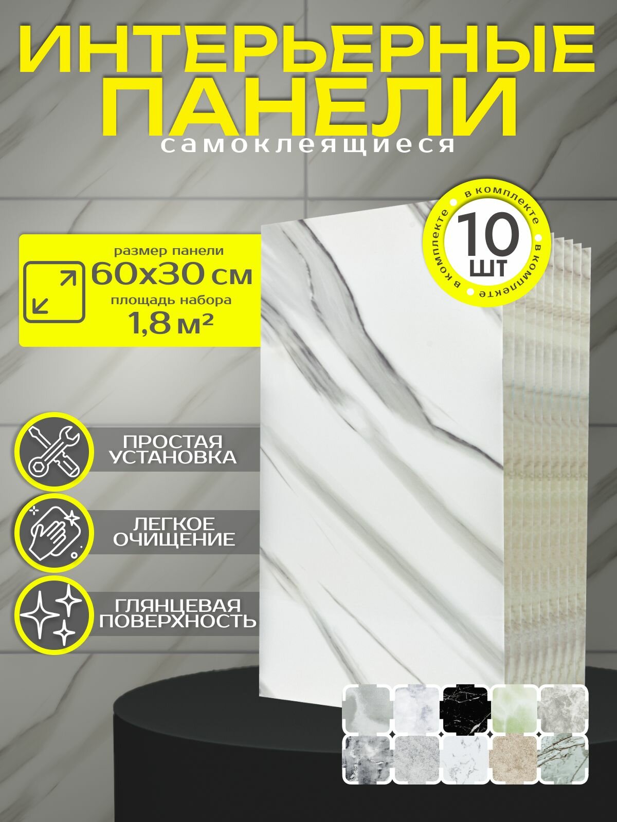 | Дополнительная информация | самоклеящиеся панели 60х30 см - комплект 20 шт. |