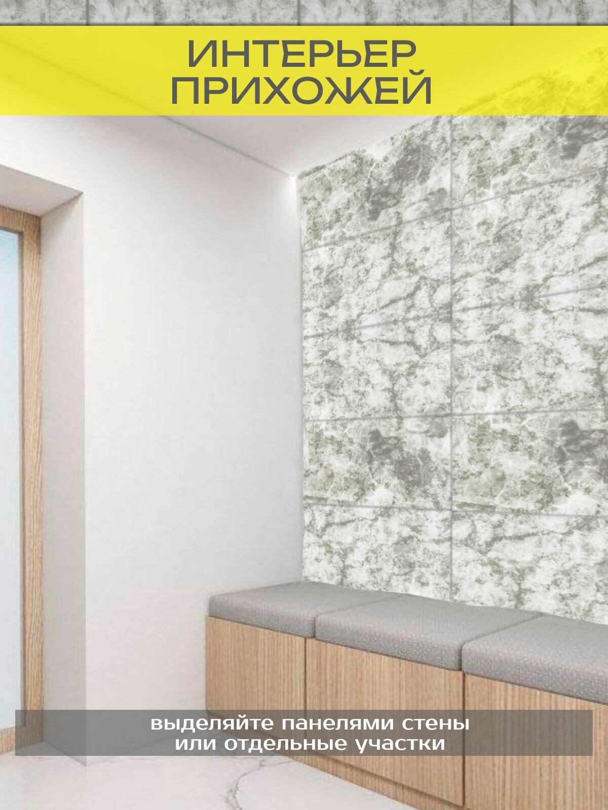 Панели для стен 60x30 см – 10 шт в наборе стеновые панели для кухни, ванной и гостиной. Цвет мраморные серые волны