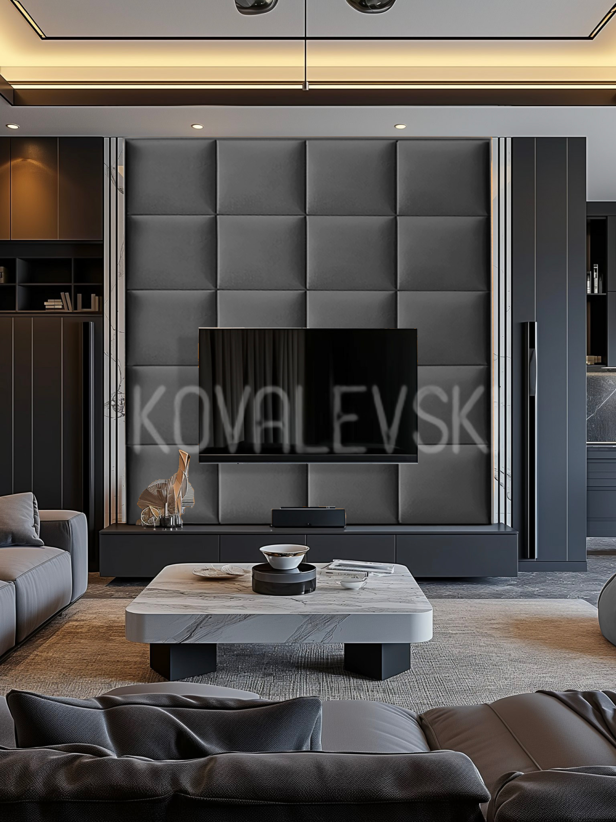 Мягкая стеновая панель25х50 см, 4 шт графит