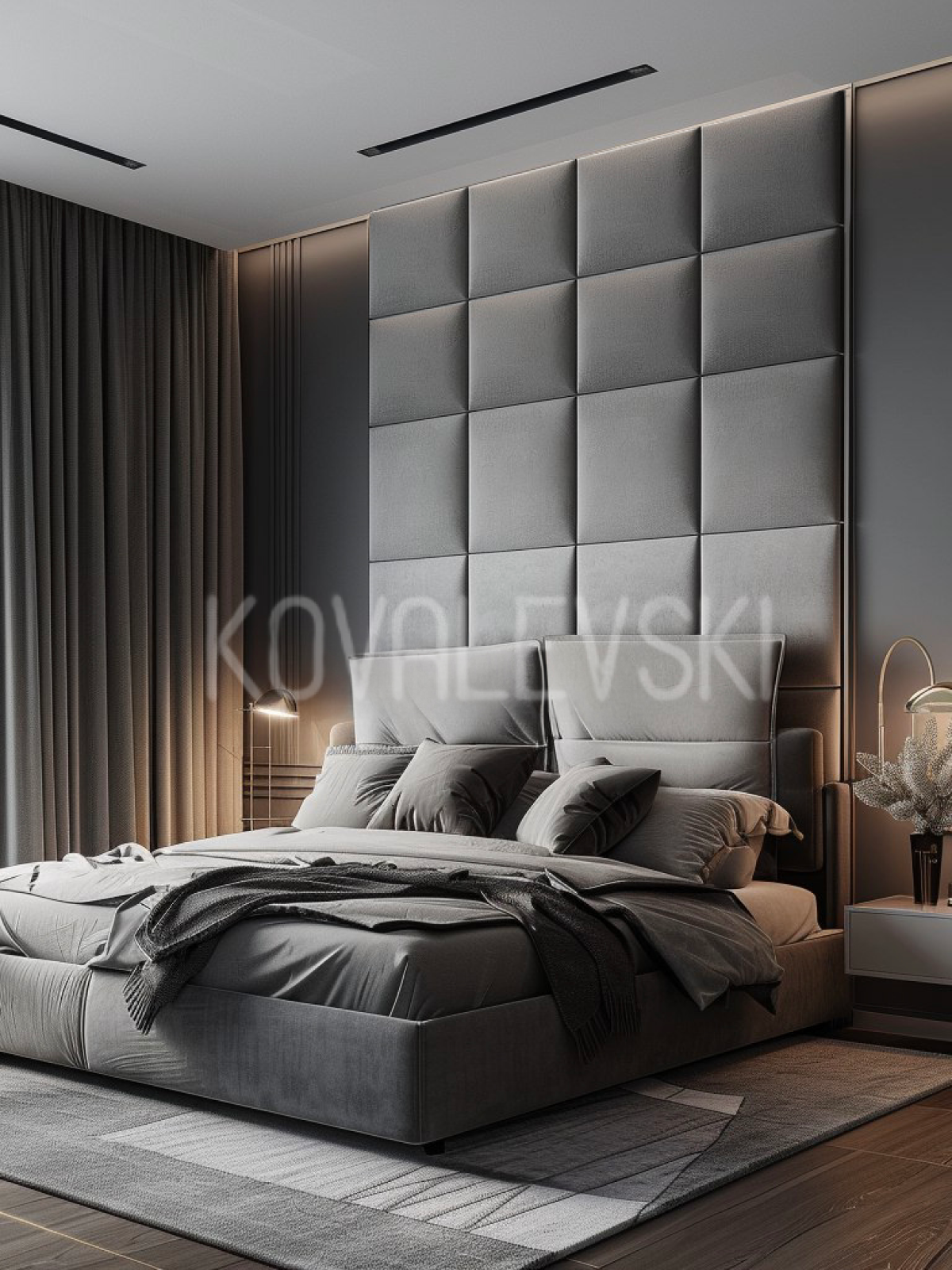 Мягкая стеновая панель25х50 см, 4 шт серая