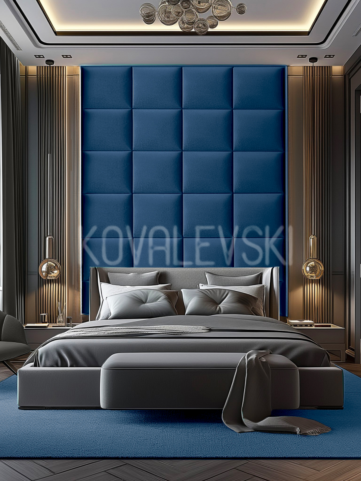 Мягкая стеновая панель25х50 см, 4 шт темно-синяя