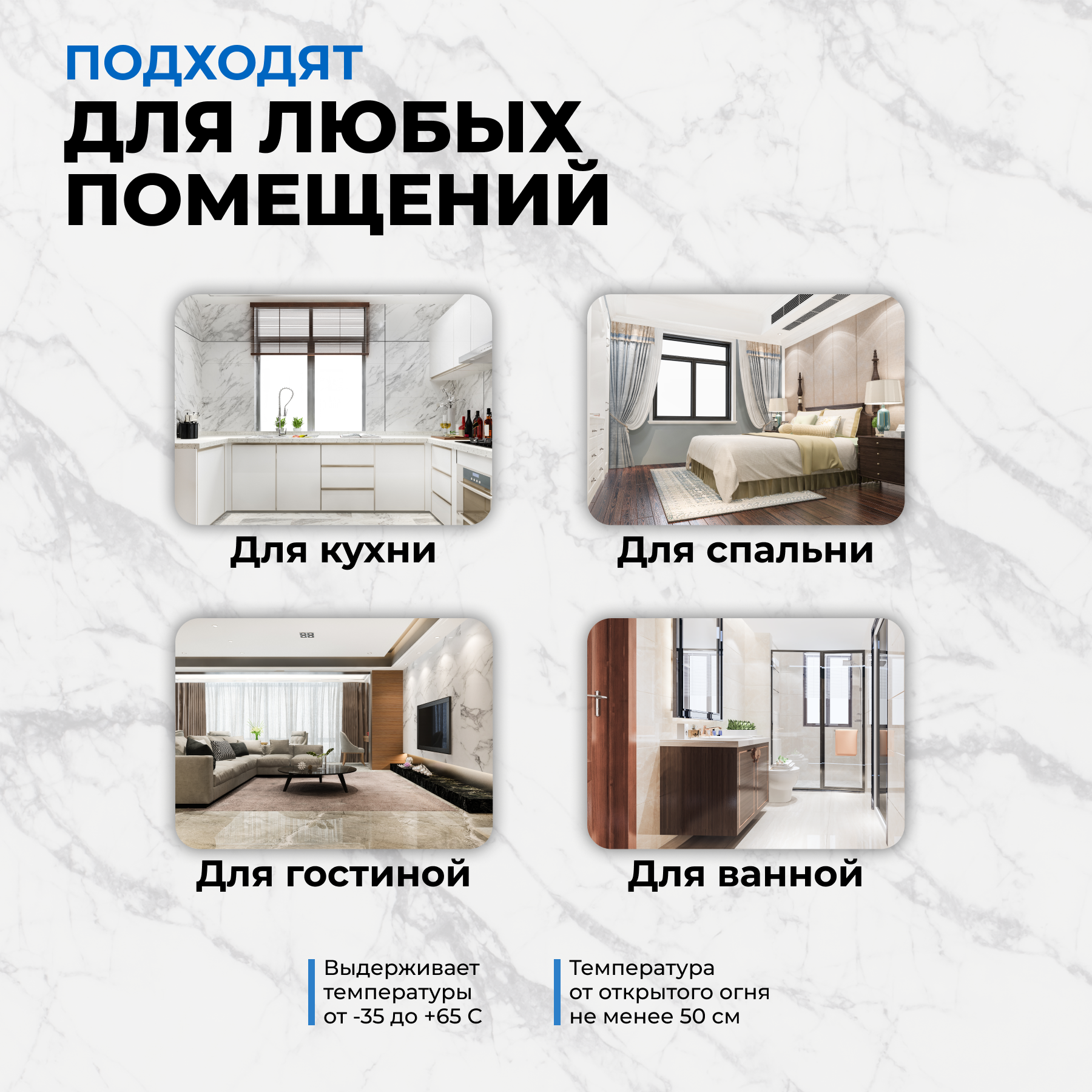 Белый мрамор, 60х30 см плитка глянцевая, самоклеющиеся панели для стен, декор для дома на кухню, в ванную (арт. 112) 6 шт.