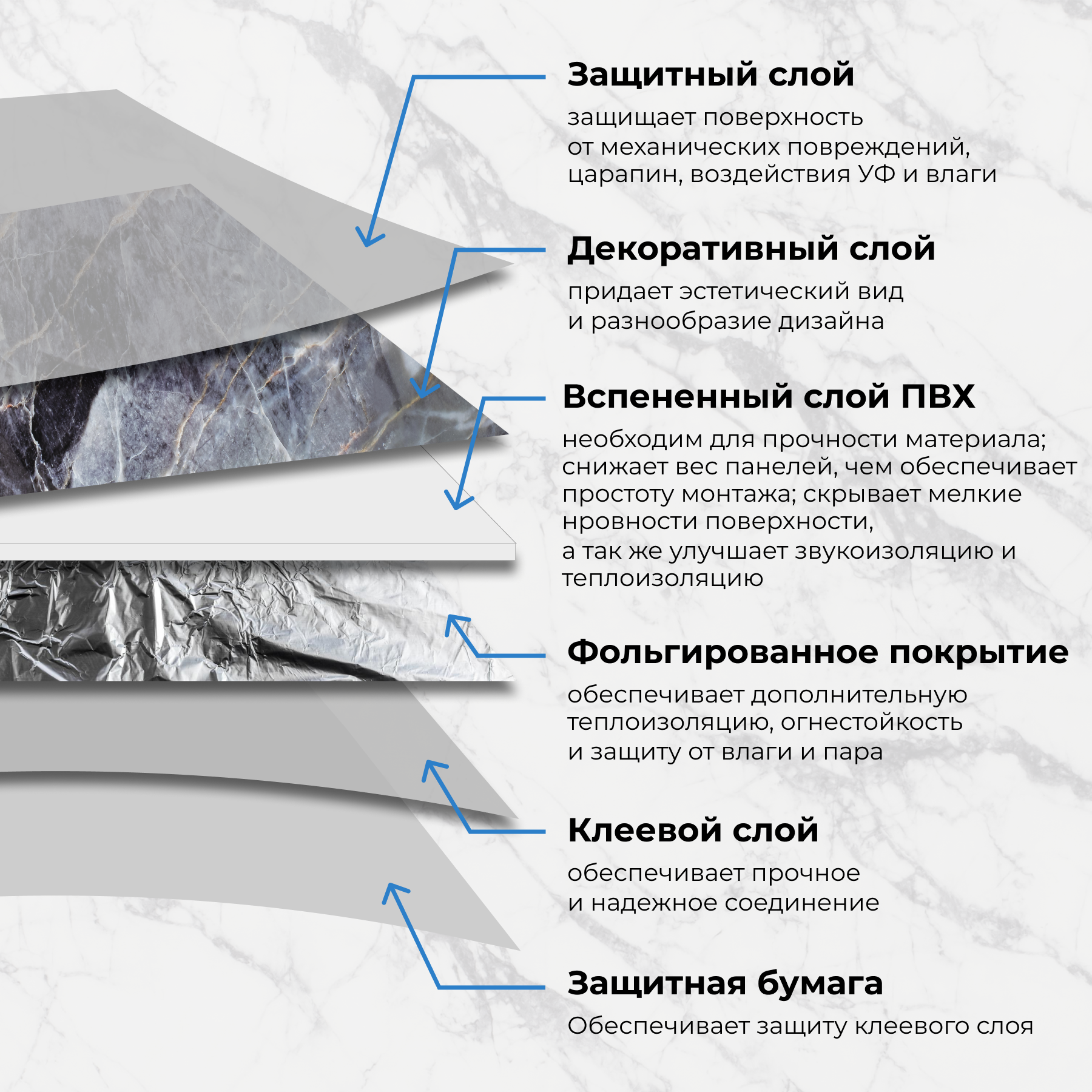 Небесный мрамор, 60х30 см плитка глянцевая, самоклеющиеся панели для стен, декор для дома на кухню, в ванную (арт. 910) 18 шт.