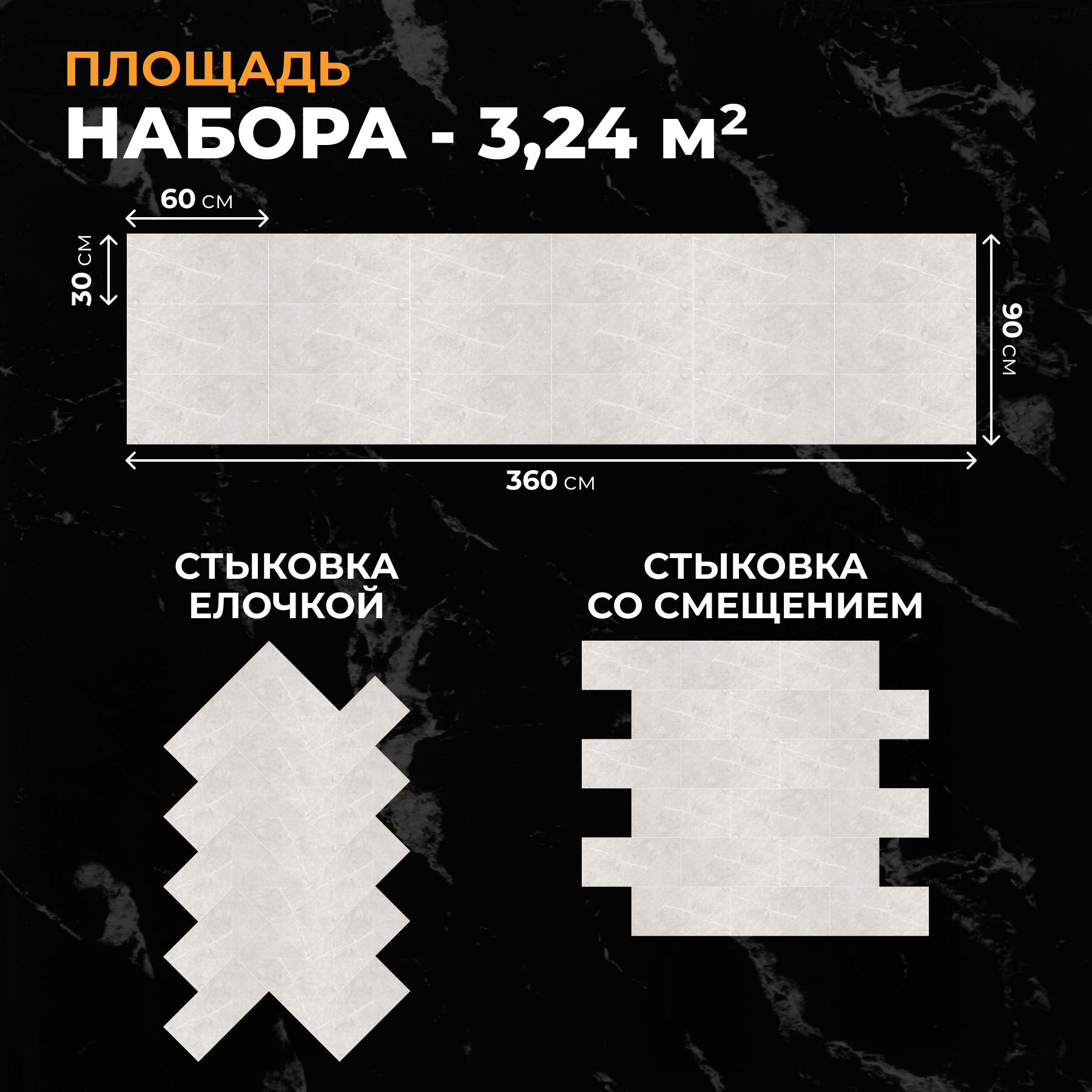 60х30 см плитка глянцевая, самоклеющиеся панели для стен, декор для дома на кухню, в ванную (арт. 8015) 18 шт.