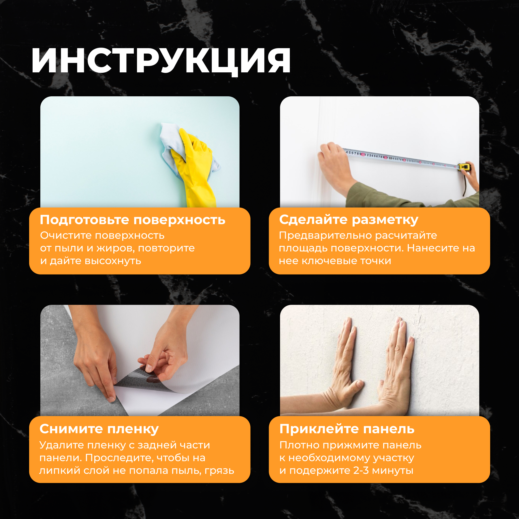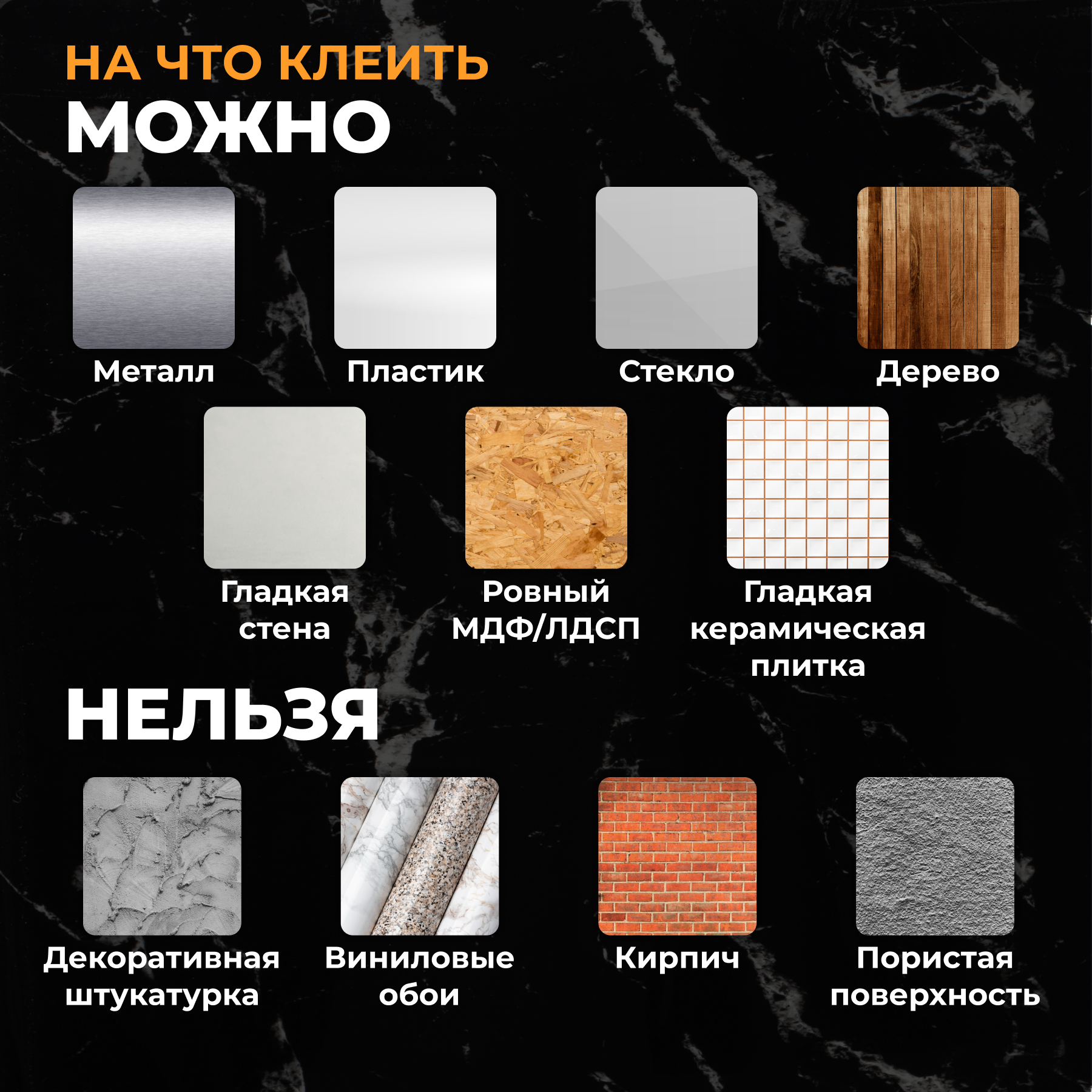 Черный мрамор, 60х30 см плитка глянцевая, самоклеющиеся панели для стен, декор для дома на кухню, в ванную (арт. 114) 18 шт.