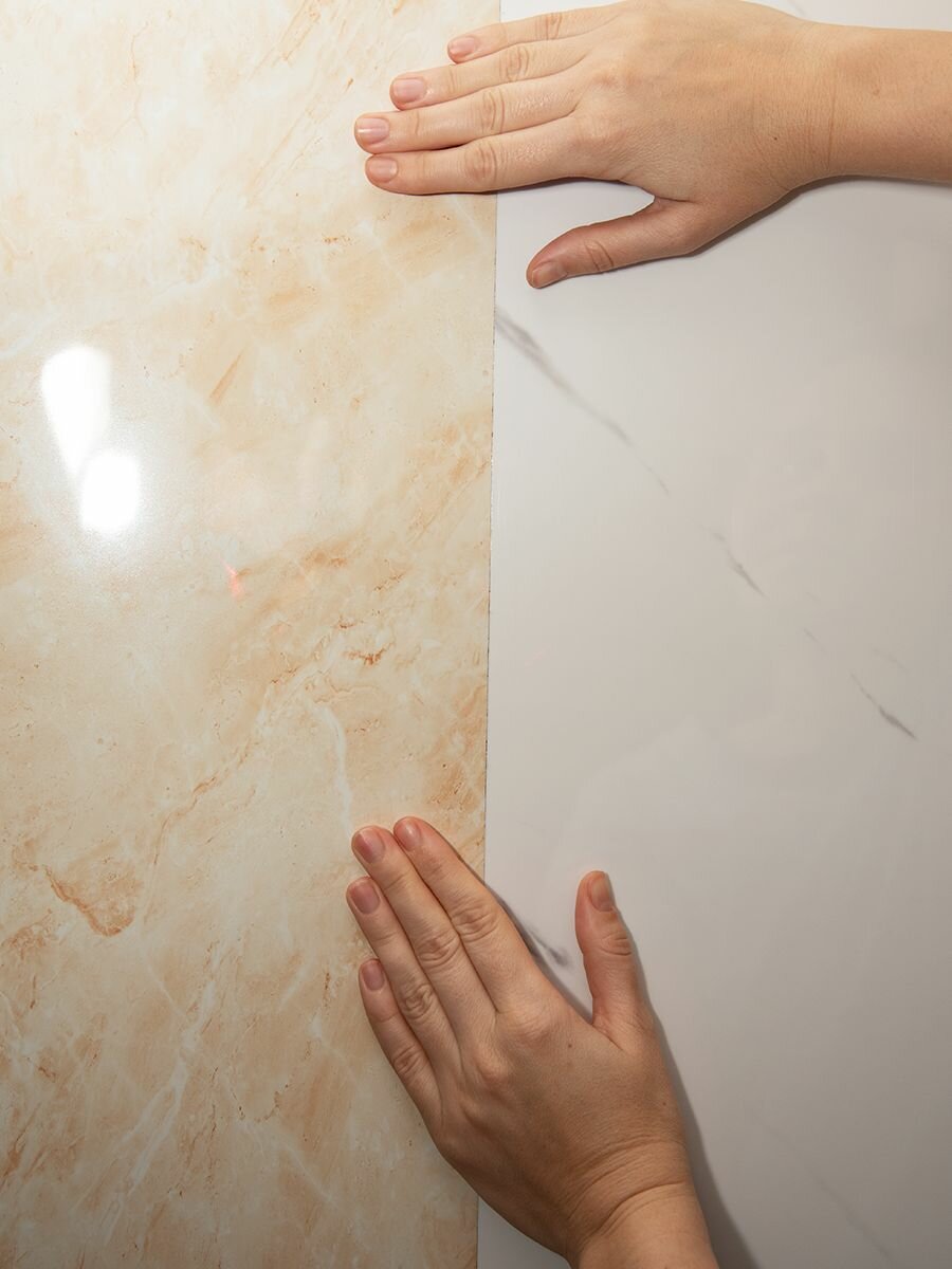 Самоклеющиеся панели для стен "Мрамор Китерон" 60х30 см (12 шт) плитка глянцевая, декор для дома на кухню, в ванную