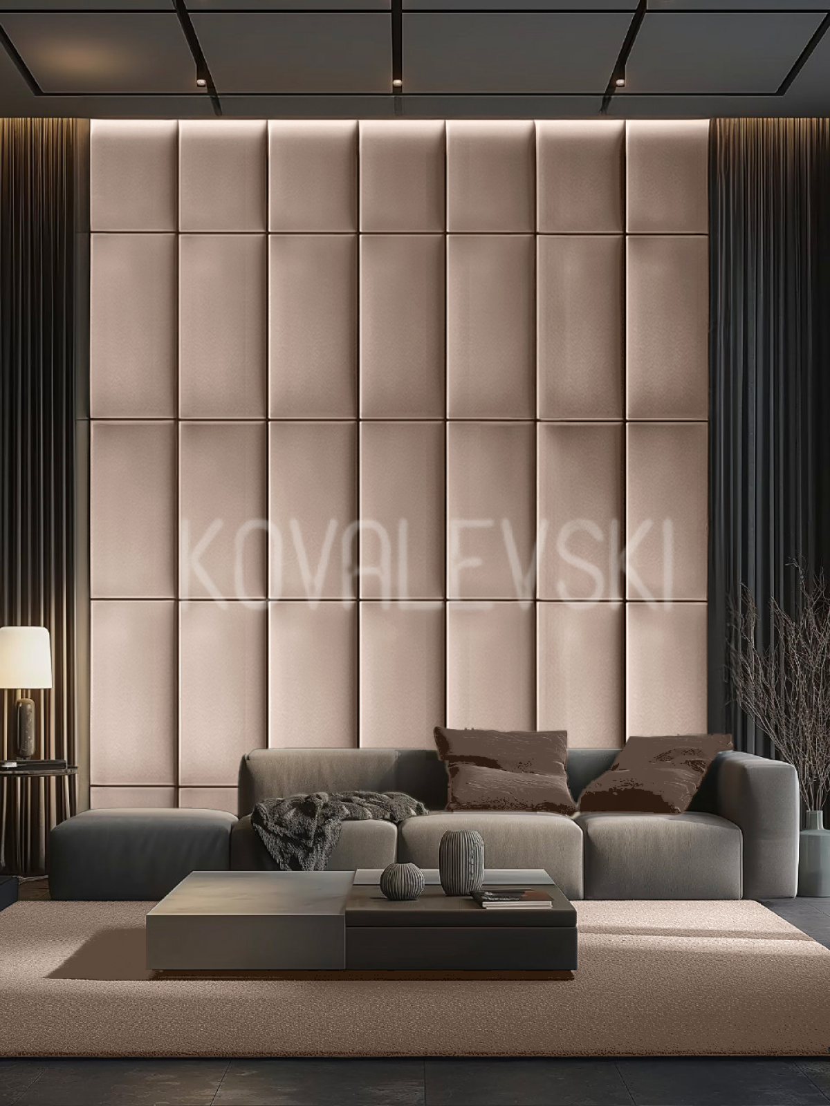 Мягкая стеновая панель25х50 см, 4 шт графит