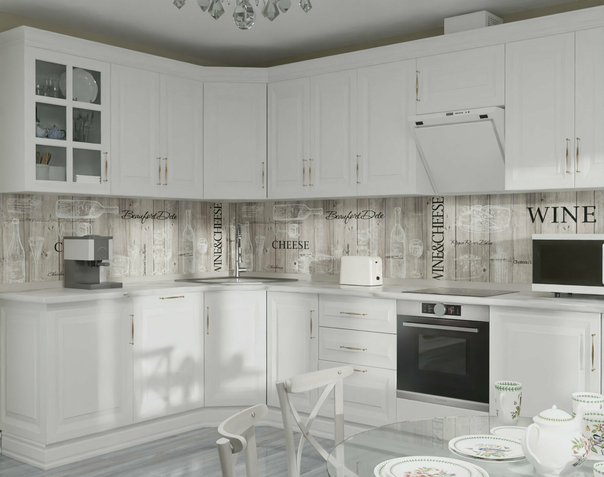 Фартук для кухни на стену из ПВХ Белый чай 3000*600мм фотопечать