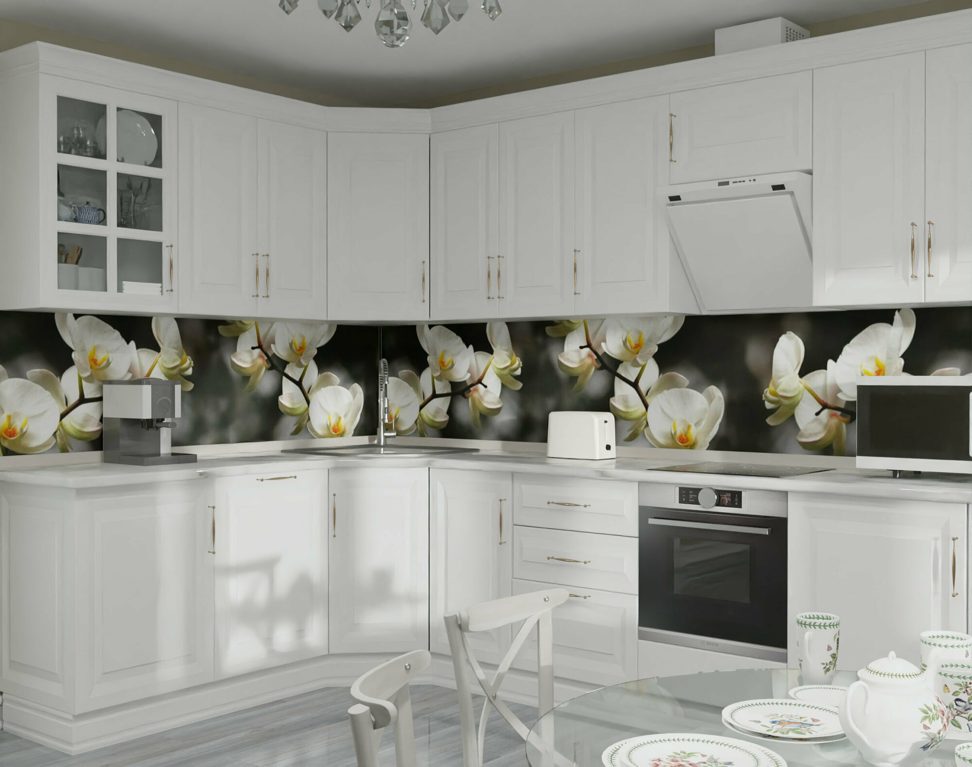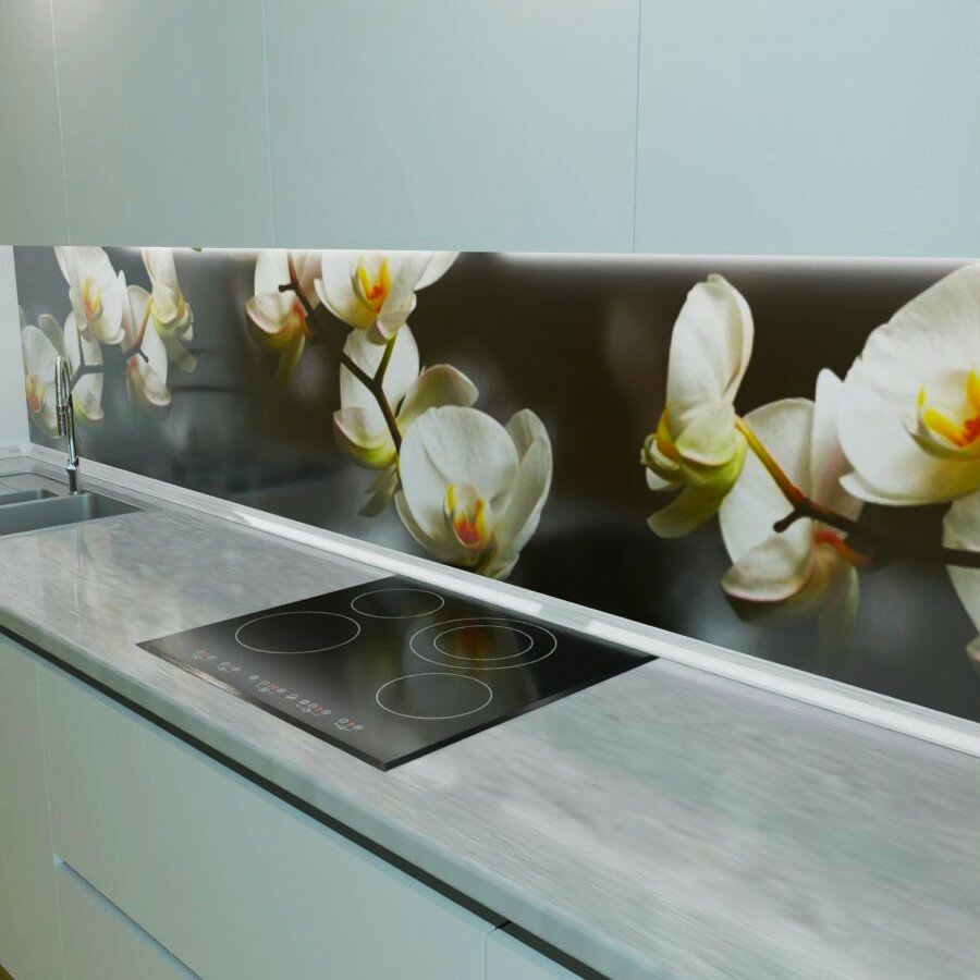 Фартук для кухни на стену из ПВХ Молочная орхидея 3000*600мм фотопечать