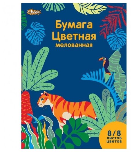 Купить Бумага цветная мелованная №1 School "Живая природа" (8 листов, 8 цветов, А4)