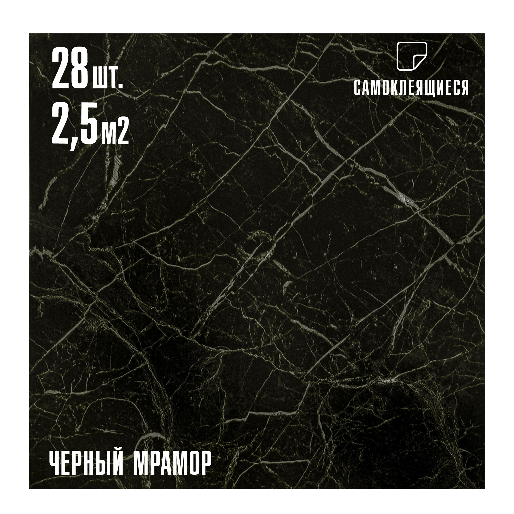 Купить Комплект 28шт. Самоклеящаяся ПВХ плитка LAKO DECOR "Чёрный мрамор", толщина 2мм, 2.52м²