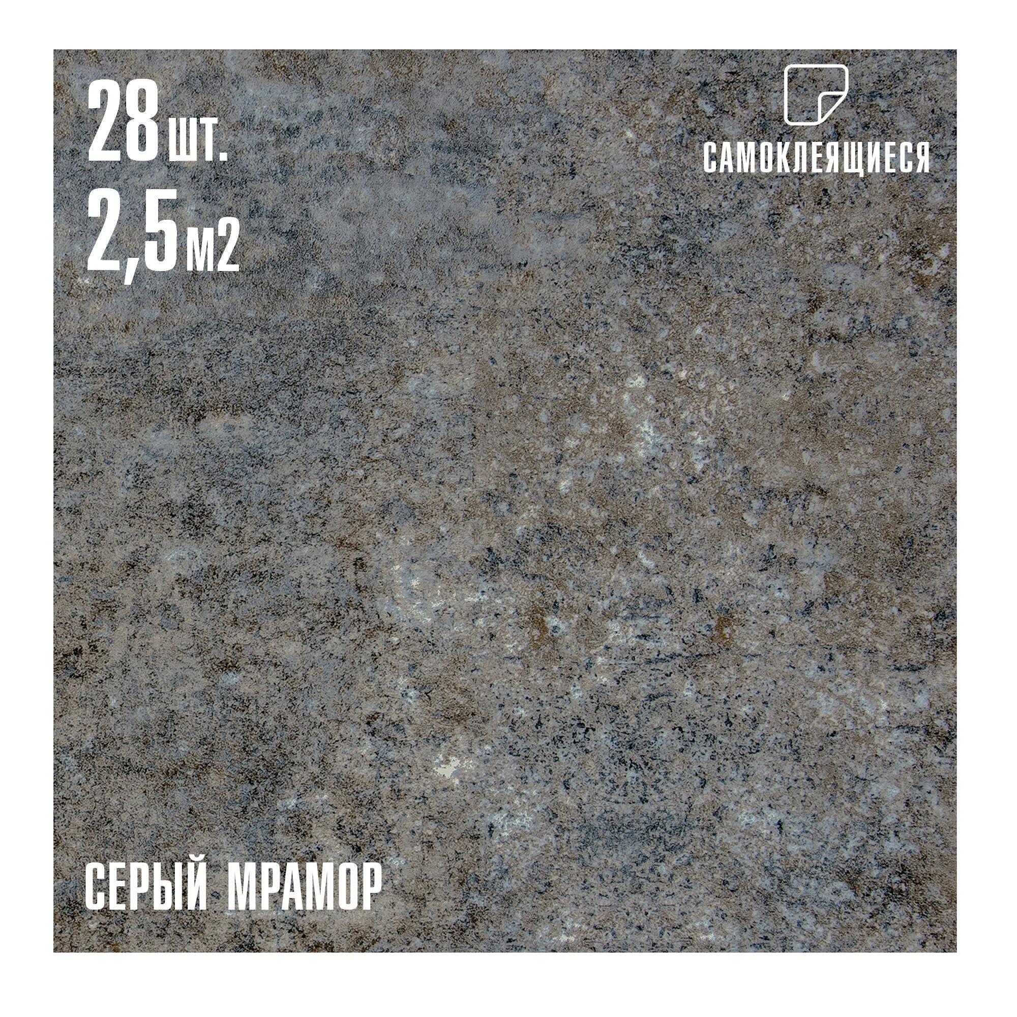 Купить Комплект 28шт. Самоклеящаяся ПВХ плитка LAKO DECOR "Серый мрамор", толщина 2мм, 2.52м²