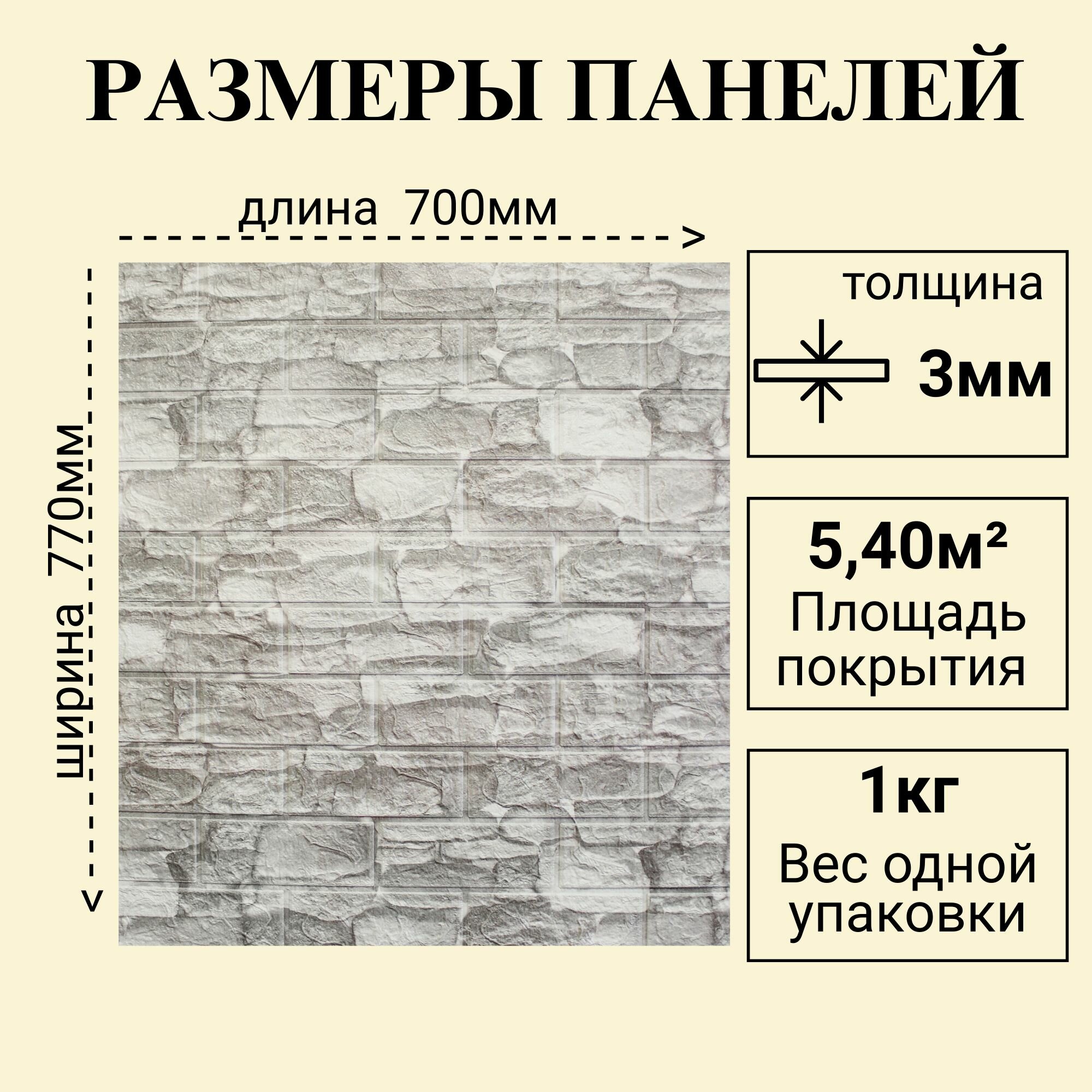 Купить Панели 3D самоклеящиеся для стен арт 327 "Булыжник бело-серый" 700х770х3мм 10шт