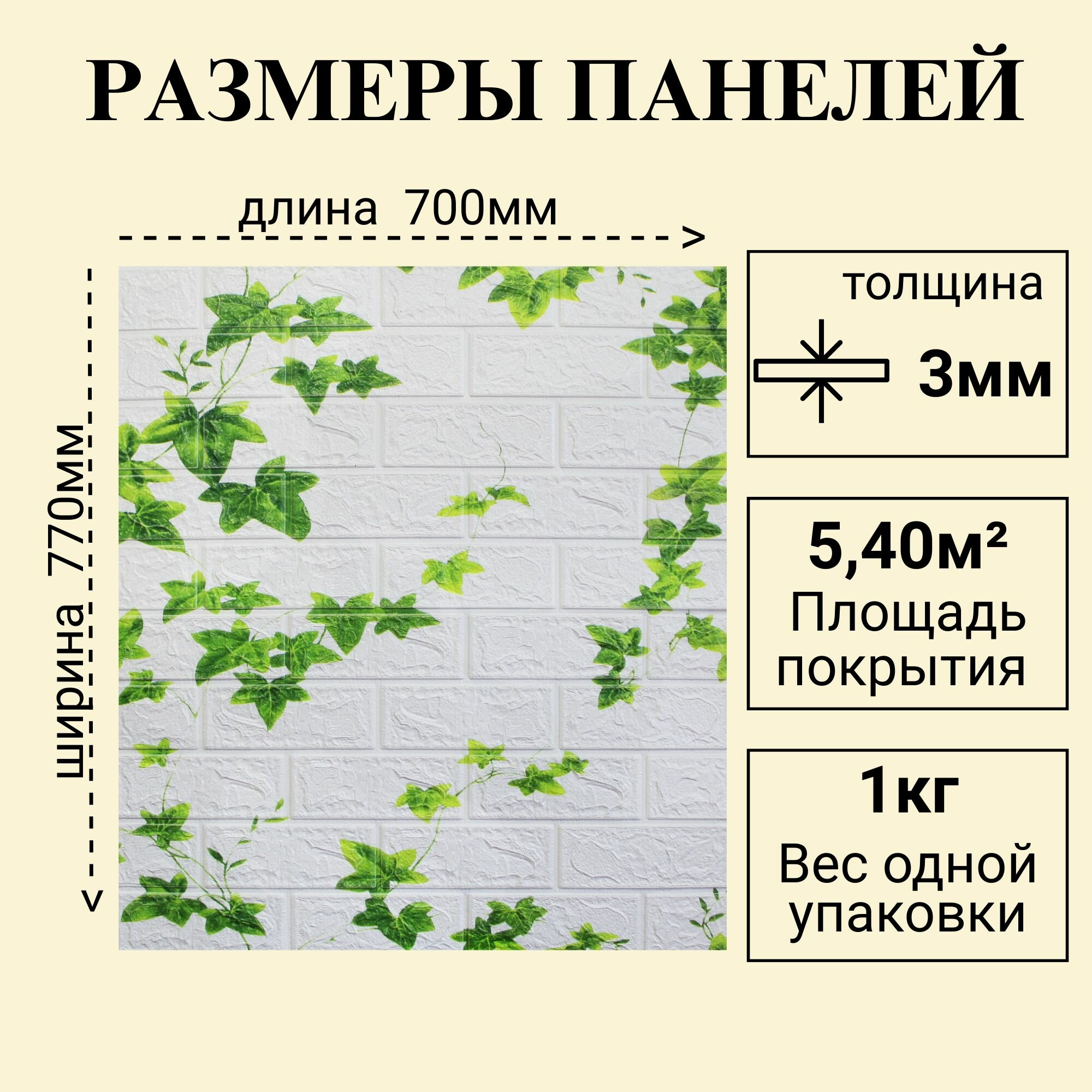 Купить Панели 3D самоклеящиеся для стен арт 316 "Плющ на белом кирпиче" 700х770х3мм 10 шт