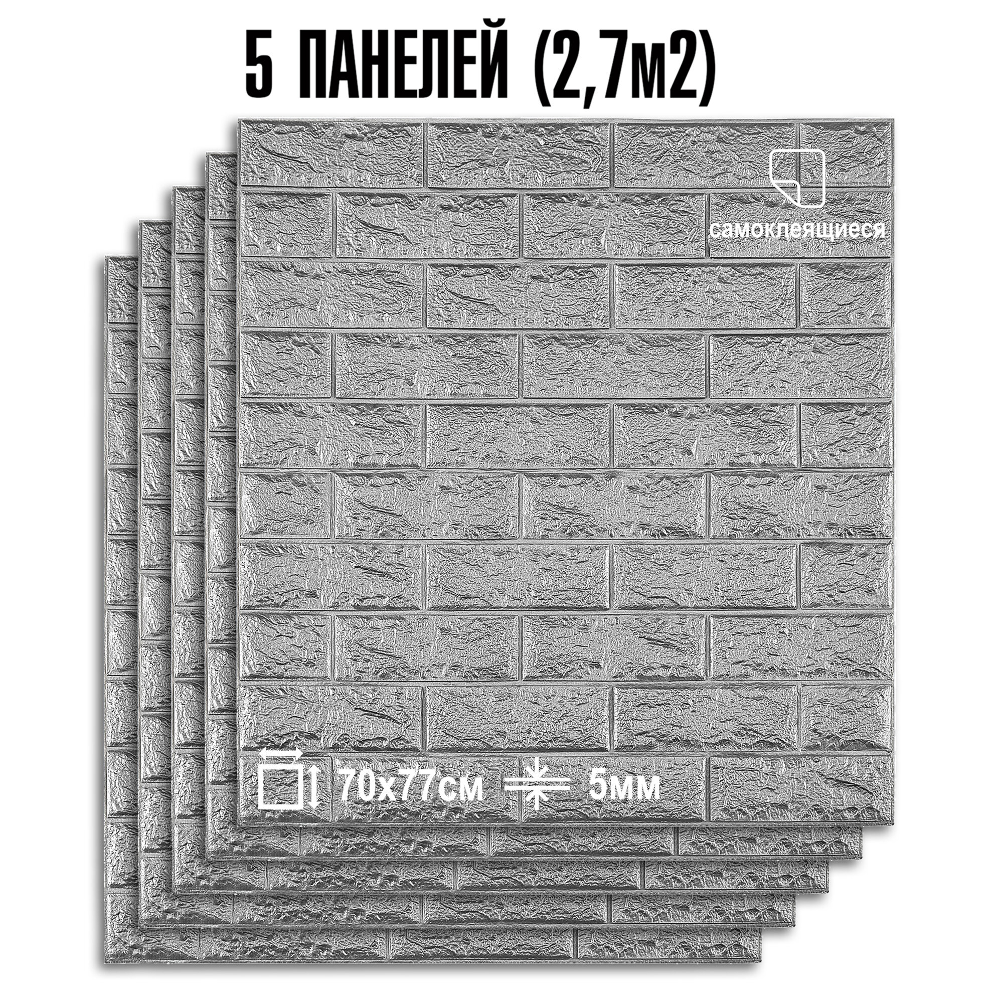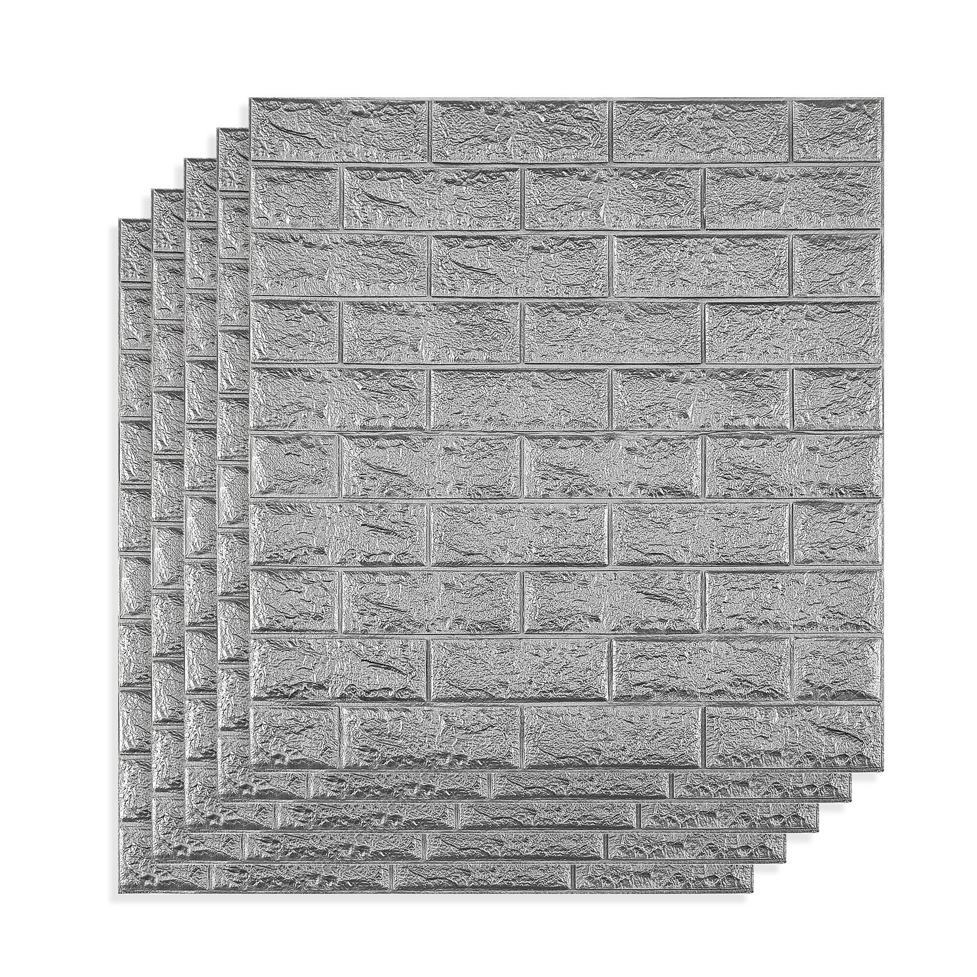 Купить Комплект 5 шт Самоклеящихся 3D панелей для стен LAKO DECOR, Классический кирпич "Серебристый", 2,7м²