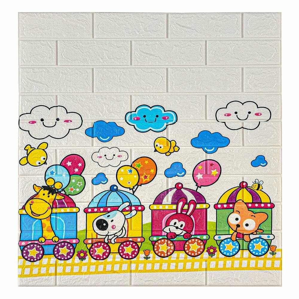Купить Самоклеящаяся 3D-панель для стен LAKO DECOR, Детская комната, Весёлый поезд, 70x77см, толщина 6мм