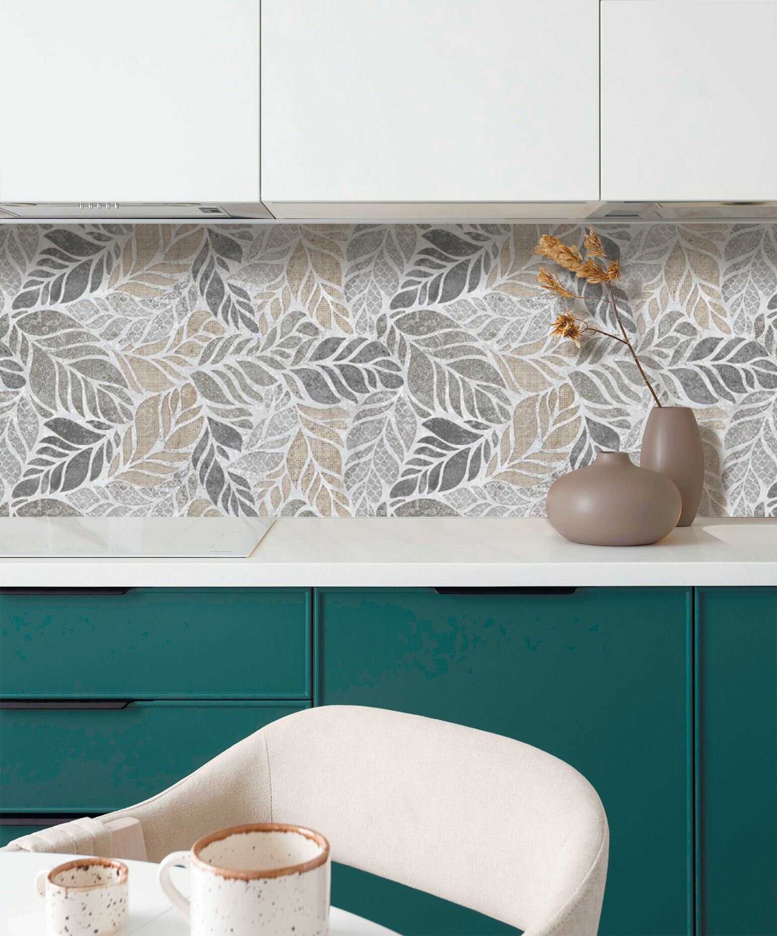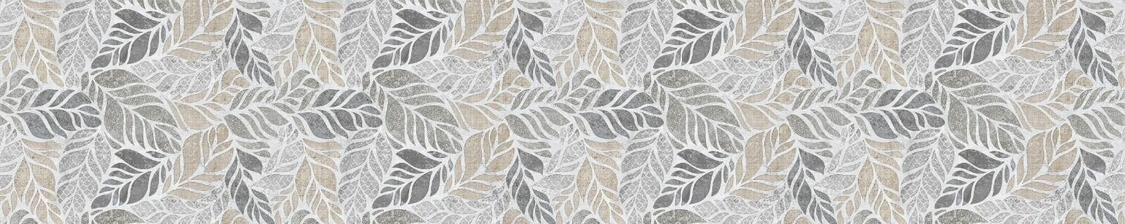Фартук для кухни на стену 3000х600 мм, Листья в графике . Панель стеновая ПВХ влагостойкая декоративная