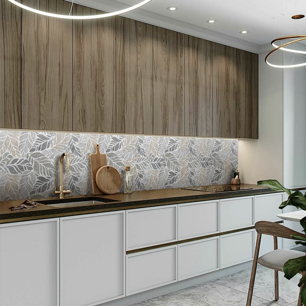 СохранитьФартук для кухни на стену 3000х600 мм, Листья в бетоне. Панель стеновая ПВХ влагостойкая декоративная интересное: