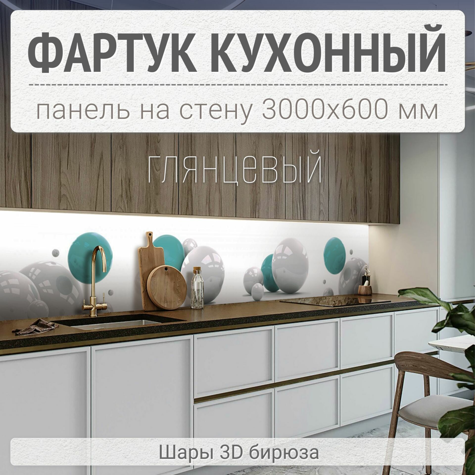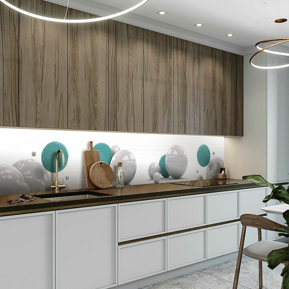 СохранитьФартук для кухни на стену 3000х600 мм, Шары 3D бирюза. Панель стеновая ПВХ влагостойкая декоративная интересное: