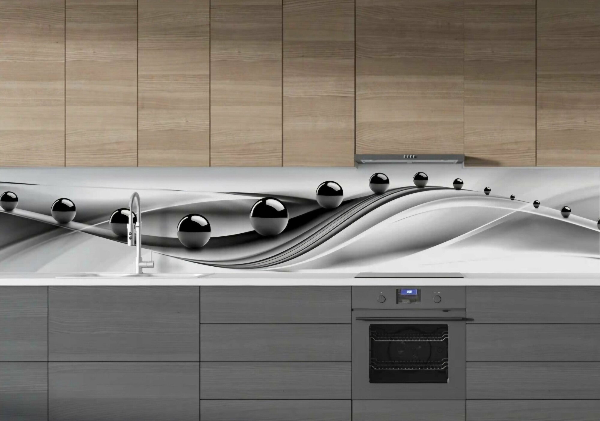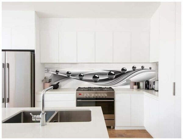 СохранитьФартук для кухни на стену 3000х600 мм, Черные сферы Новинка 2024 Панель стеновая ПВХ влагостойкая декоративная интересное: