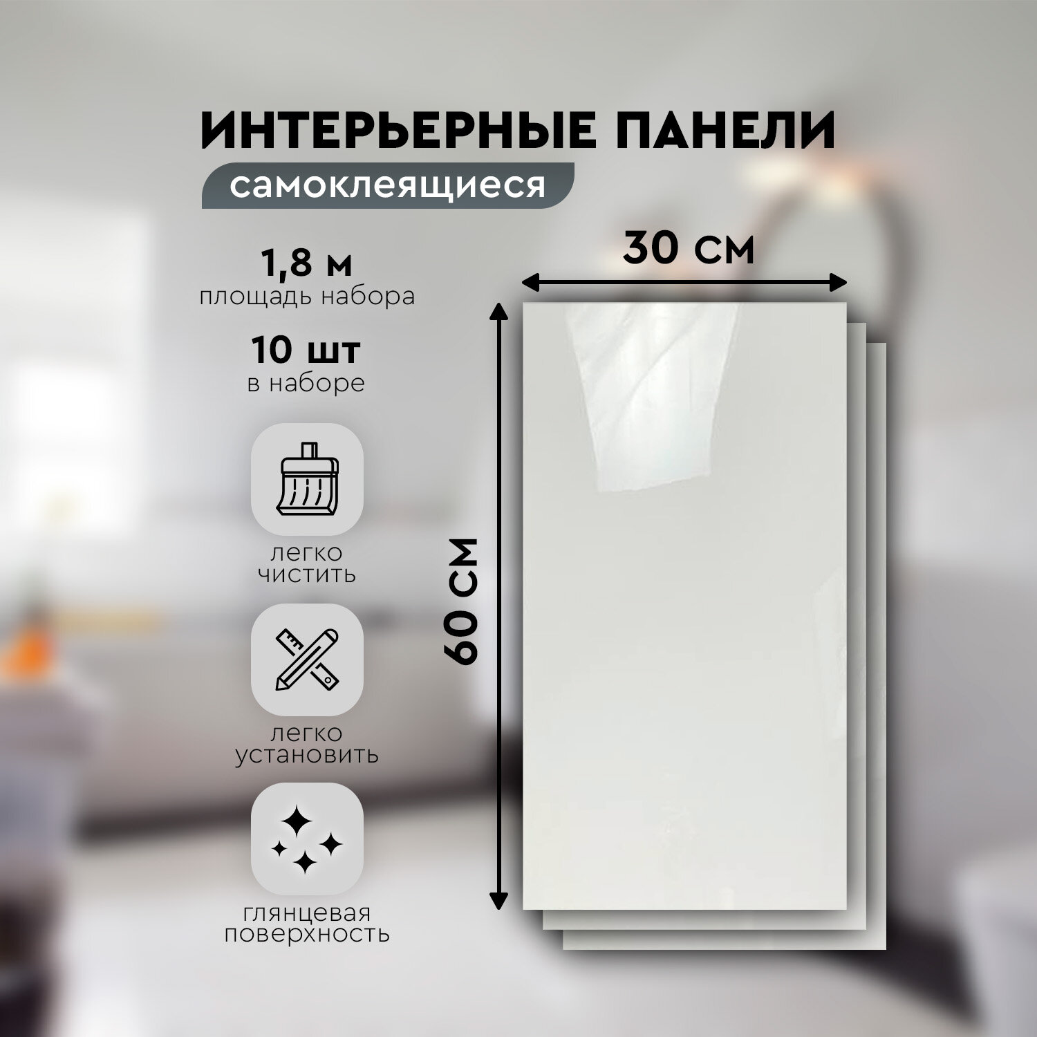 СохранитьПанели самоклеящиеся для стен 30х60 см. 10 шт. белый глянец интересное:
