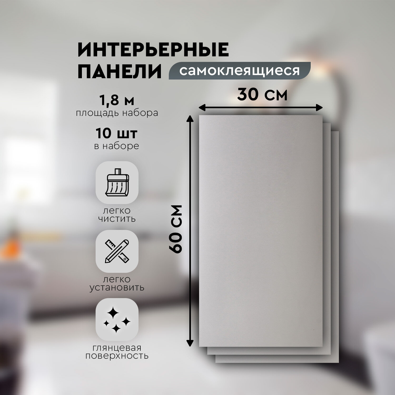СохранитьПанели самоклеящиеся для стен 30х60 см. 10 шт. серый глянец интересное: